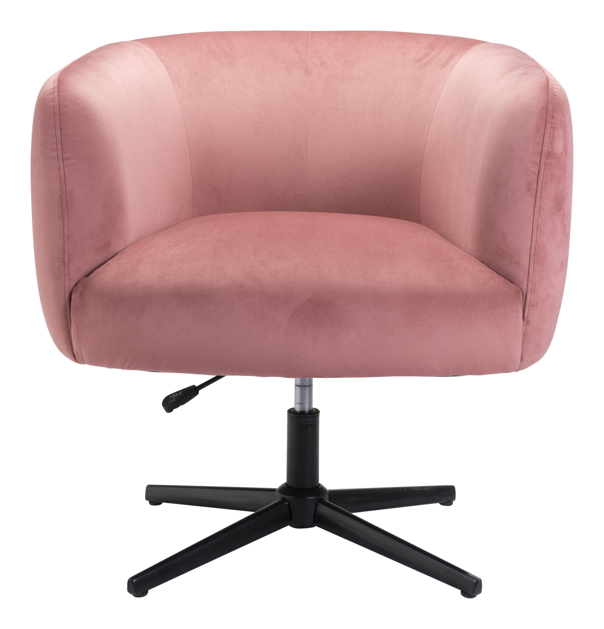 Plush and proud, the Elia Chair, fits into any glam or boho chic space with a maximalist design. The swivel frame is powder coated in matte black and the seat is covered in velvet. This chair looks great in any bedroom, living room, or hotel lobby.