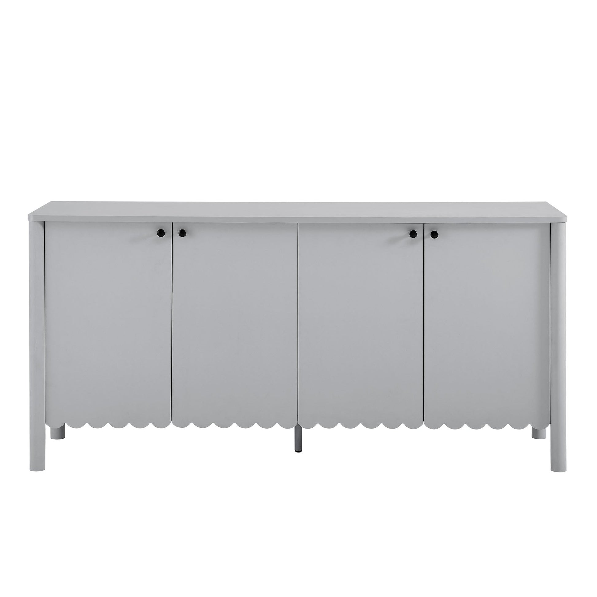 An elegant blend of subtle curves and practical storage, the Emmeline 4-Door Wavy Sideboard Cabinet adds a touch of artistic flair to any room. Its standout feature—a scalloped bottom edge—creates a soft, flowing silhouette that enhances the modern simplicity of the design. Behind its four soft-close doors, adjustable shelves provide flexible storage space, ideal for organizing dining essentials, decor, or media accessories. Crafted with a sturdy frame and finished in smooth laminate, this wide farmhouse sideboard is as functional as it is stylish. The round door knobs and non-marking glides add to its refined appearance, while ensuring your floors remain protected. Whether serving as a modern sideboard, accent cabinet, or entryway console with storage, Emmeline brings a contemporary, polished look to hallways, dining rooms, or living spaces. Assembly required. Overall Product Dimensions: 16.97"L x 66.02"W x 31.7"H
