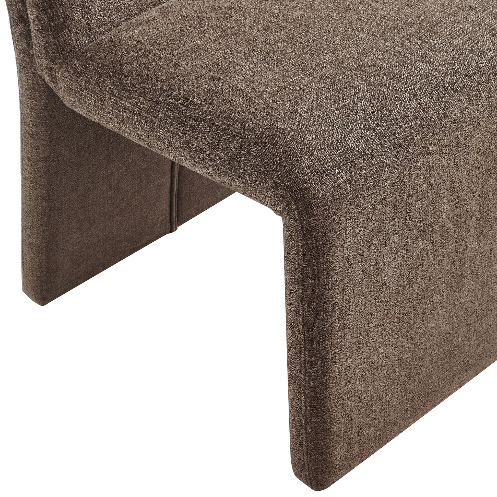 Transform your dining or living space with a sophisticated blend of modern design and comfort. This upholstered dining chair, covered in textured slub weave fabric, exudes charm with its uniquely folded silhouette that seamlessly flows from the backrest to the base. The dense foam padding ensures plush comfort, while the armless design contributes to an airy, minimalist aesthetic, making it perfect for contemporary settings.