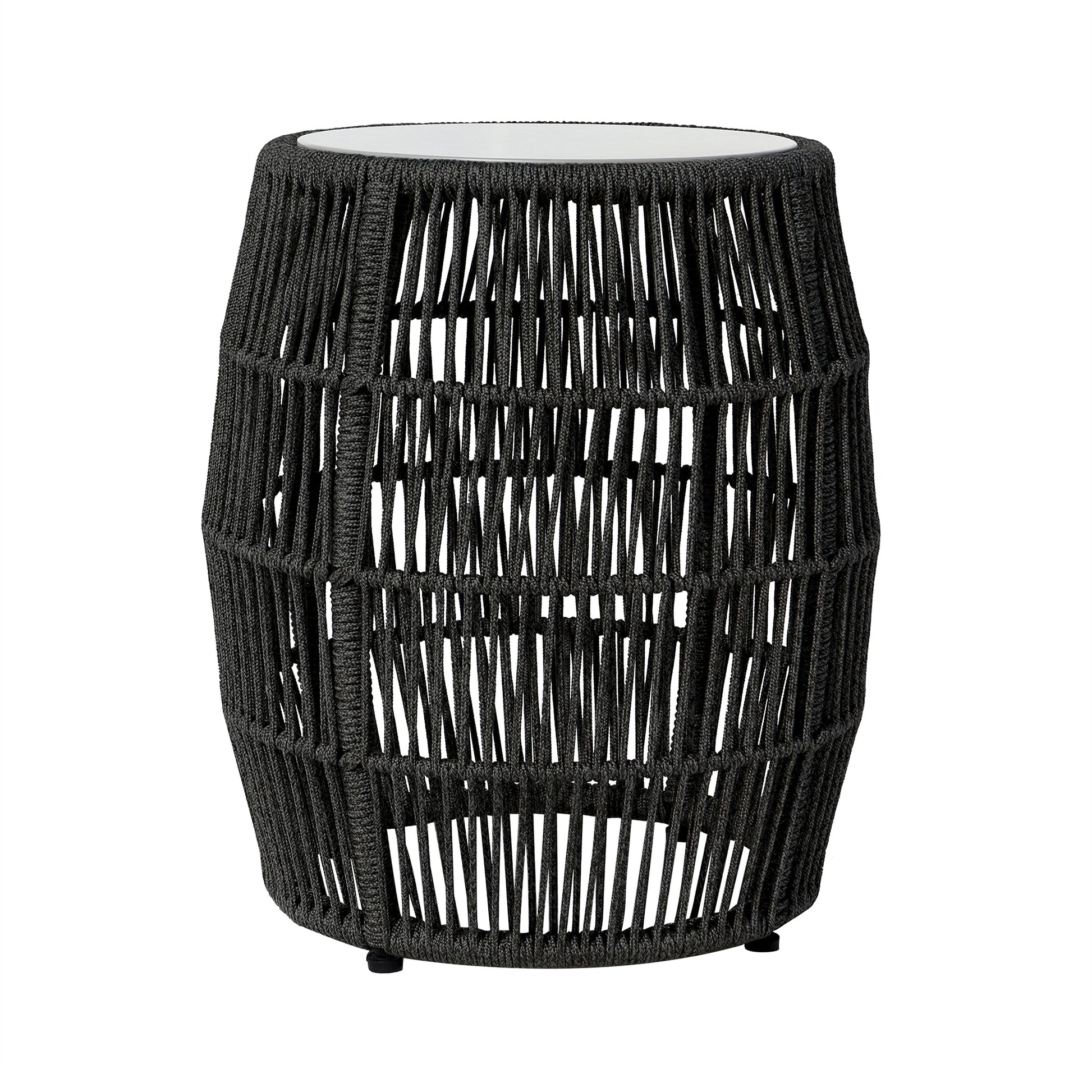 Emory Indoor Outdoor Garden Stool End Table in Charcoal Rope and Gray Stone