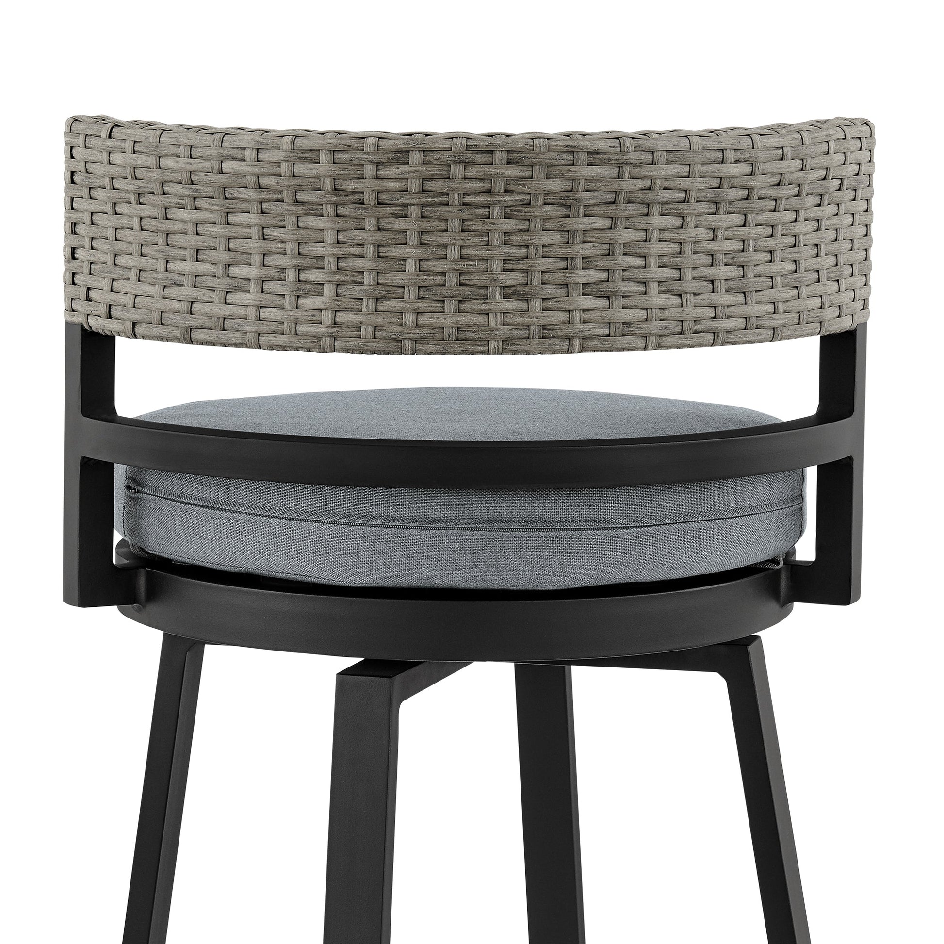Encinitas Outdoor Patio Swivel Bar Stool in Aluminum and Wicker with Cushions