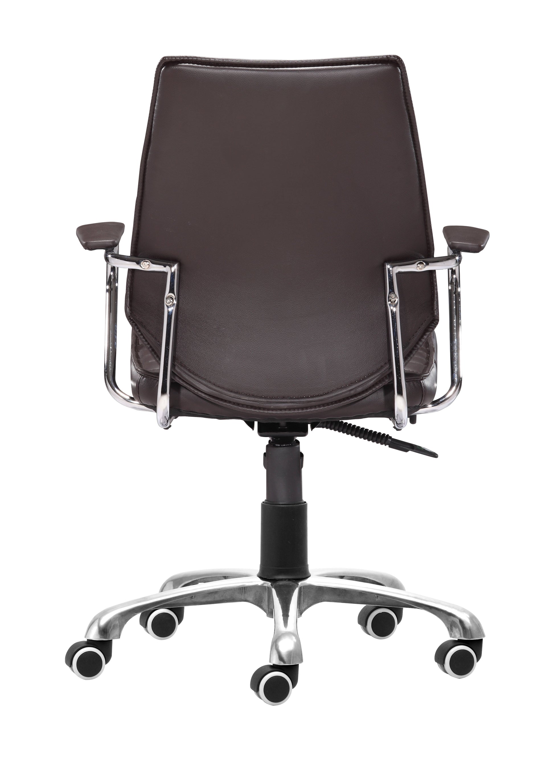 Be the captain of your office with the Enterprise Low Back Office chair. The perfect command seat, the Enterprise has a solid chrome frame wrapped in a supple 100% Polyurethane accented by panel tufting for extra comfortability. Featuring adjustable height and tilt mechanisms, plus easy rolling casters.