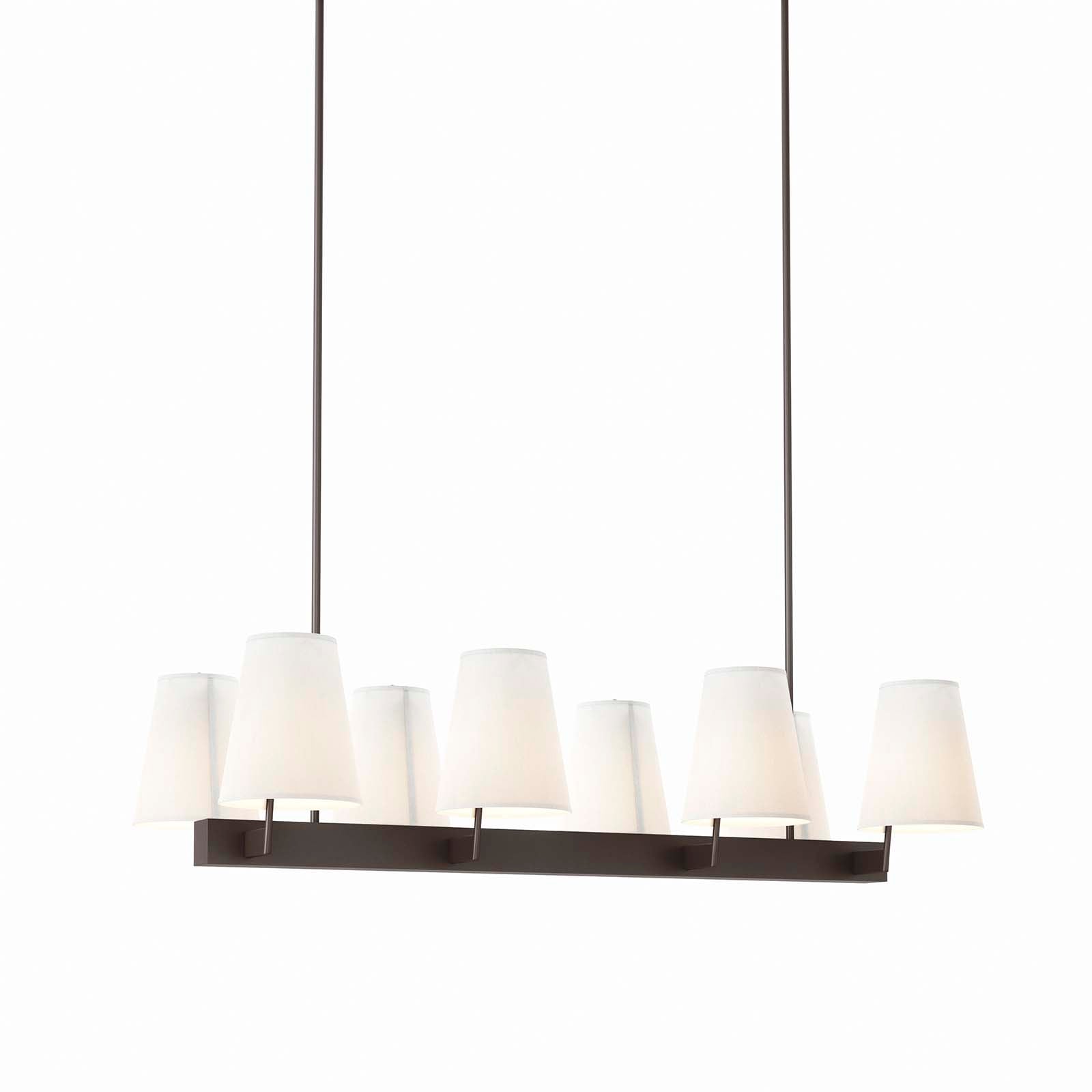 The Enthrall 8-Light Chandelier brings modern grandeur to a living room, dining room, entryway, bedroom, or office. This linear pendant light features two rows of fabric cone shades covering eight lightbulbs that require E26 bulbs 60W maximum or LED equivalent (not included). Compatible with sloped ceilings, Enthrall has a rectangular ceiling canopy with swivel adaptors and features two five-piece, height-adjustable hanging rods to suit a range of ceiling heights. ETL Listed for Damp Locations. Luminaires that are “Suitable for Damp Locations” are approved for areas that are regularly exposed to moisture and condensation. Professional installation required.