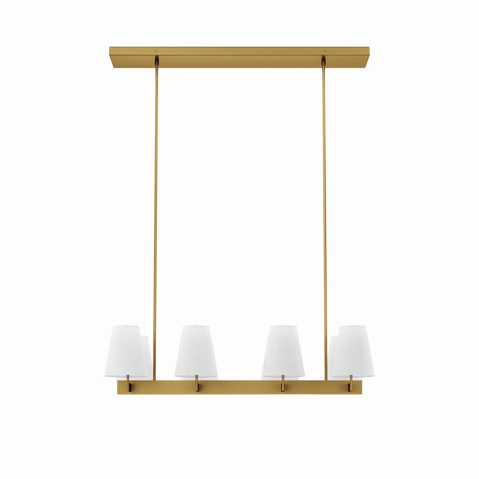 The Enthrall 8-Light Chandelier brings modern grandeur to a living room, dining room, entryway, bedroom, or office. This linear pendant light features two rows of fabric cone shades covering eight lightbulbs that require E26 bulbs 60W maximum or LED equivalent (not included). Compatible with sloped ceilings, Enthrall has a rectangular ceiling canopy with swivel adaptors and features two five-piece, height-adjustable hanging rods to suit a range of ceiling heights. ETL Listed for Damp Locations. Luminaires that are “Suitable for Damp Locations” are approved for areas that are regularly exposed to moisture and condensation. Professional installation required.