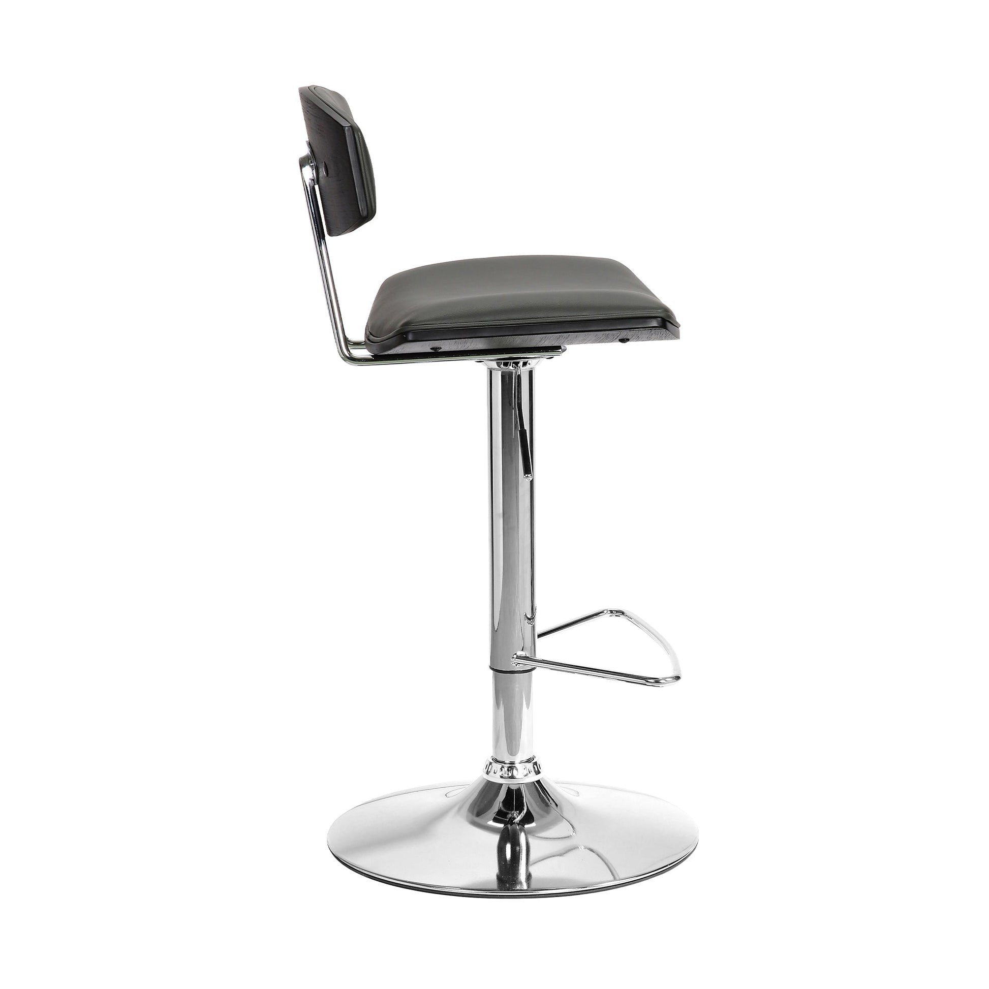 Chic and sleek, the Armen Living Erik barstool perfectly embodies mid-century modern design. Upholstered in faux leather, this barstool showcases an adjustable polished chrome base for a gorgeous, sophisticated look. The Armen Living Erik barstool is available in your choice of brown faux leather with walnut wood accents or Gray faux leather with black brushed wood accents and adjust between 34.5" and 42.5".