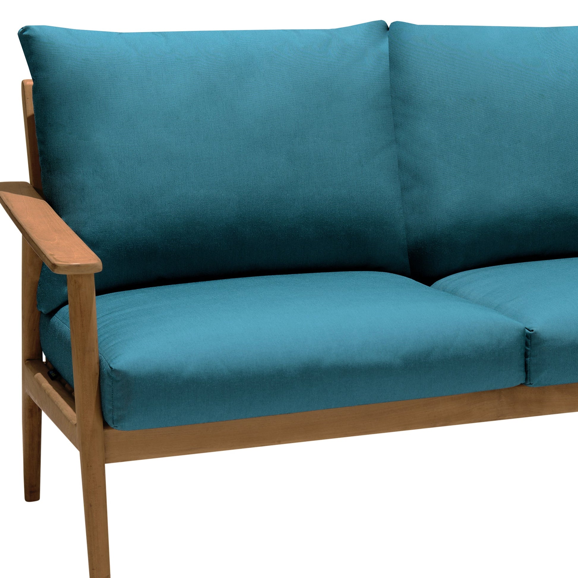 Eve Outdoor Teak Wood Sofa with Teal Olefin