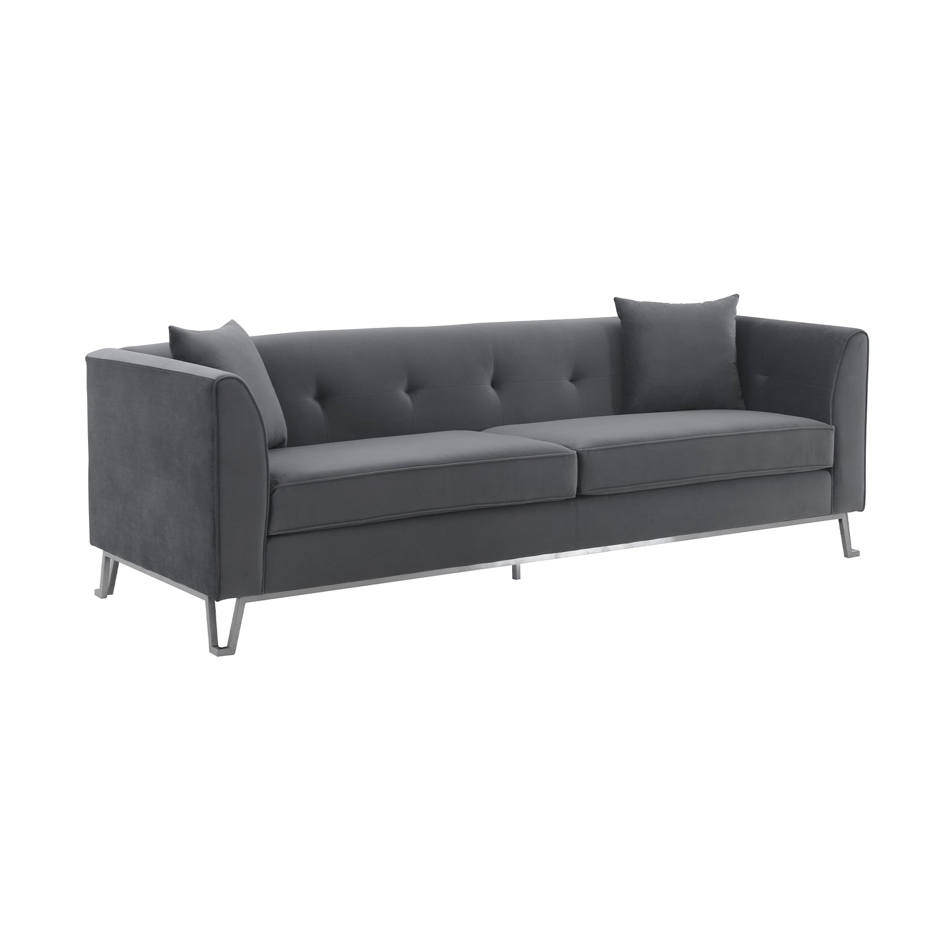 Everest 90" Gray Fabric Upholstered Sofa with Brushed Stainless Steel Legs