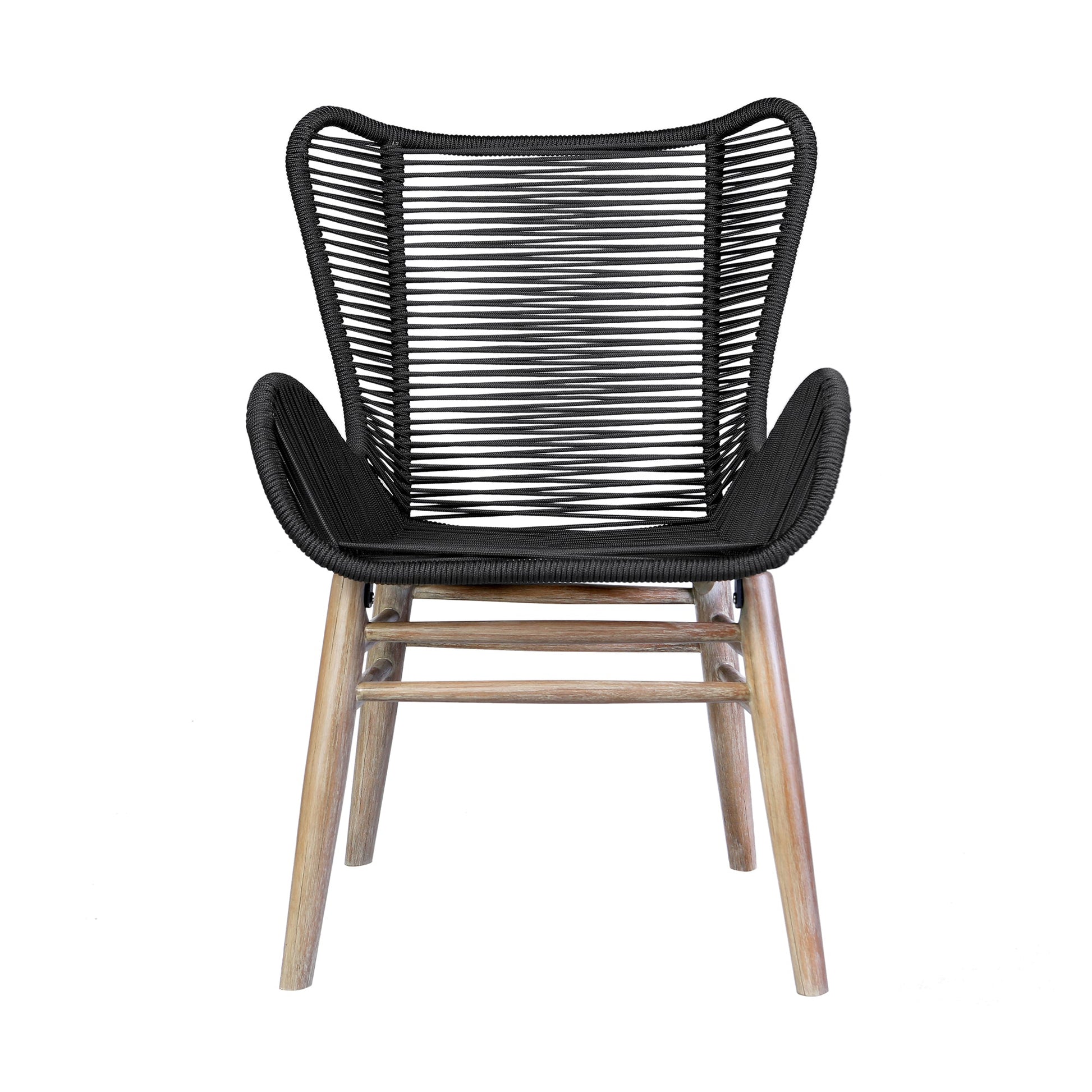 Fanny Outdoor Patio Dining Chair in Light Eucalyptus Wood and Charcoal Rope