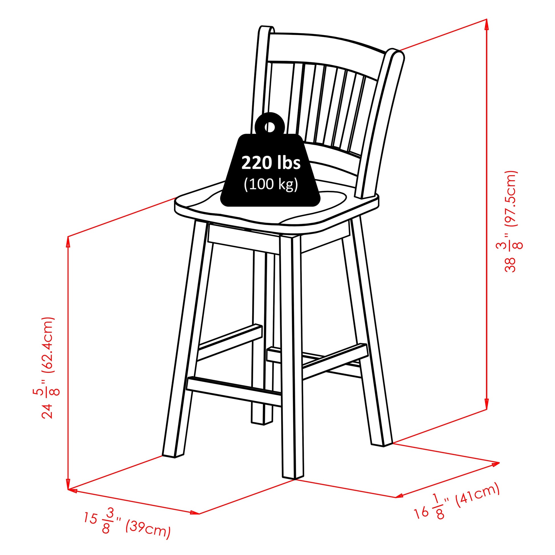A modified slat back on the Winsome Fina Swivel Seat Counter Stool provides classic styling while the stool's swivel feature offers maximum flexibility in your seating. Perfect at the kitchen counter, in a breakfast nook, or at an impromptu desk, the 24"H stool is sure to be an indispensible addition to your home. The contoured seat with rounded edges swivels 360 degrees for an easy shift in position whether dining, watching TV, or working. And the slat back is crafted with a gentle arc for comfort and support. Sturdy, squared legs are reinforced with crossbars that also serve as footrests. Constructed of solid wood in a warm walnut finish and a weight capacity of 220lbs. Conveniently packed and shipped in 1 box, that includes the hardware needed for assembly.