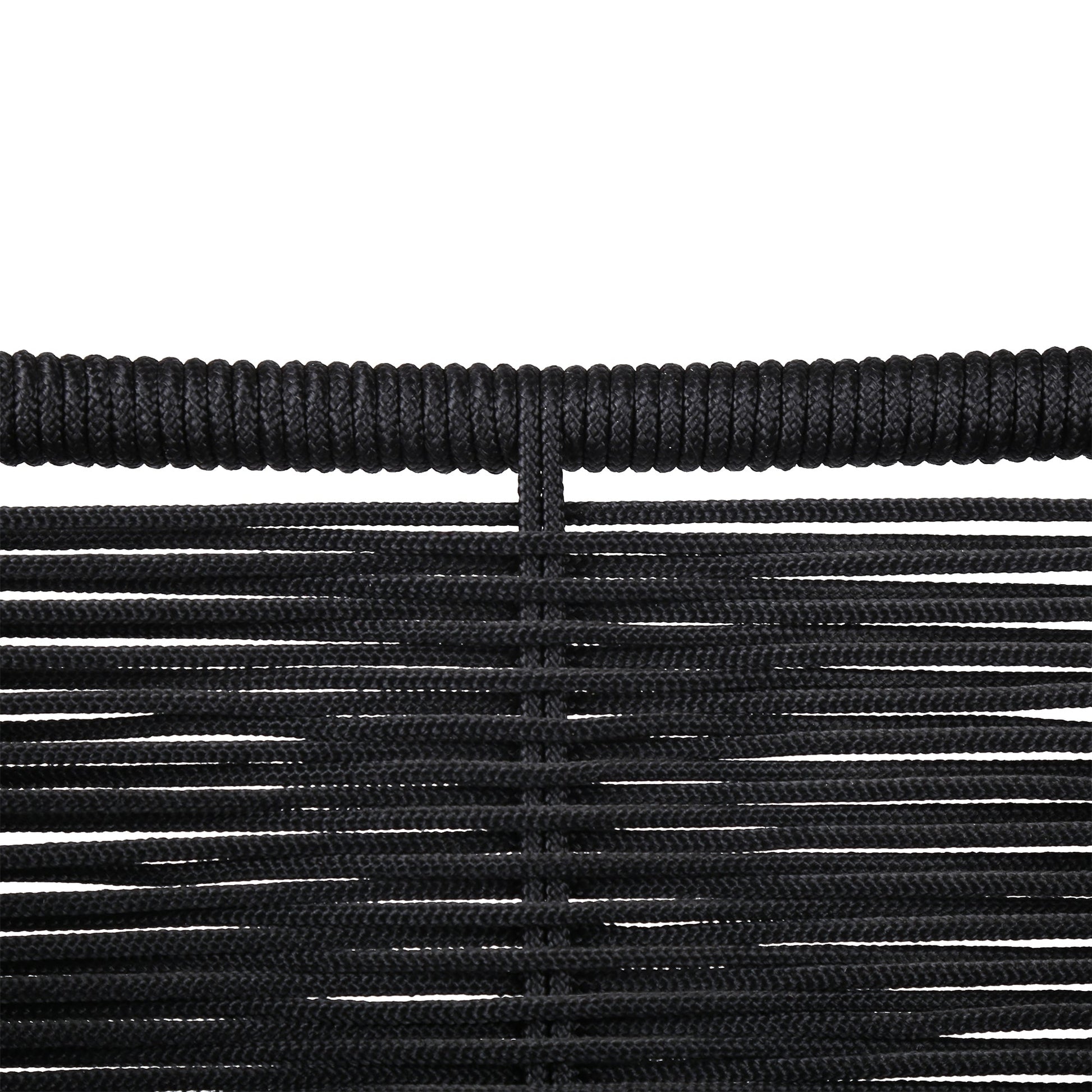 The Fineline and Clip Indoor Outdoor 7 Piece Dining Set in Dark Eucalyptus Wood with Super Stone and Black Rope is a durable and fashionable addition to any indoor or outdoor space. Just the piece for festive alfresco feasts and summertime soirees, this table features a unique tabletop made of a 5-layer composite with 2 layers of cement fiberboard surrounding the aluminum honeycomb core. This beautiful tabletop is durable and robust - capable of withstanding inclement weather and everyday wear and tear. The 80” width of the Fineline dining table is perfect for entertaining a large group of family and friends - making your outdoor area the place to be. Eucalyptus is a good choice for garden furniture as it has antifungal and antimicrobial properties. This means it has an inherent property to resist decay, rot and garden pests and can face the harshest of adverse climate-whether harsh sun, icy cold winds, cruel snow, or torrential rain. It is also rich in oil that naturally repels moisture and water. Each of the clip chairs are made with the best craftsmanship, with these chairs standing on top of durable metal legs in a black finish for a modern look. For use indoors and out, the soft UV coated nylon cords are hand dyed resulting in subtle tonal variations. This Fineline and Clip Indoor Outdoor 7 Piece Dining Set in Dark Eucalyptus Wood with Super Stone and Black Rope comes complete with one Fineline Indoor Outdoor 80" Rectangle Dining Table in Dark Eucalyptus Wood and Super Stone and 6 Clip Indoor Outdoor Stackable Steel Dining Chairs with Black Rope. Table Dimensions: 81"W x 35"D x 30"H. Chair Dimensions: 22"W x 25"D x 35"H SH: 18.6".