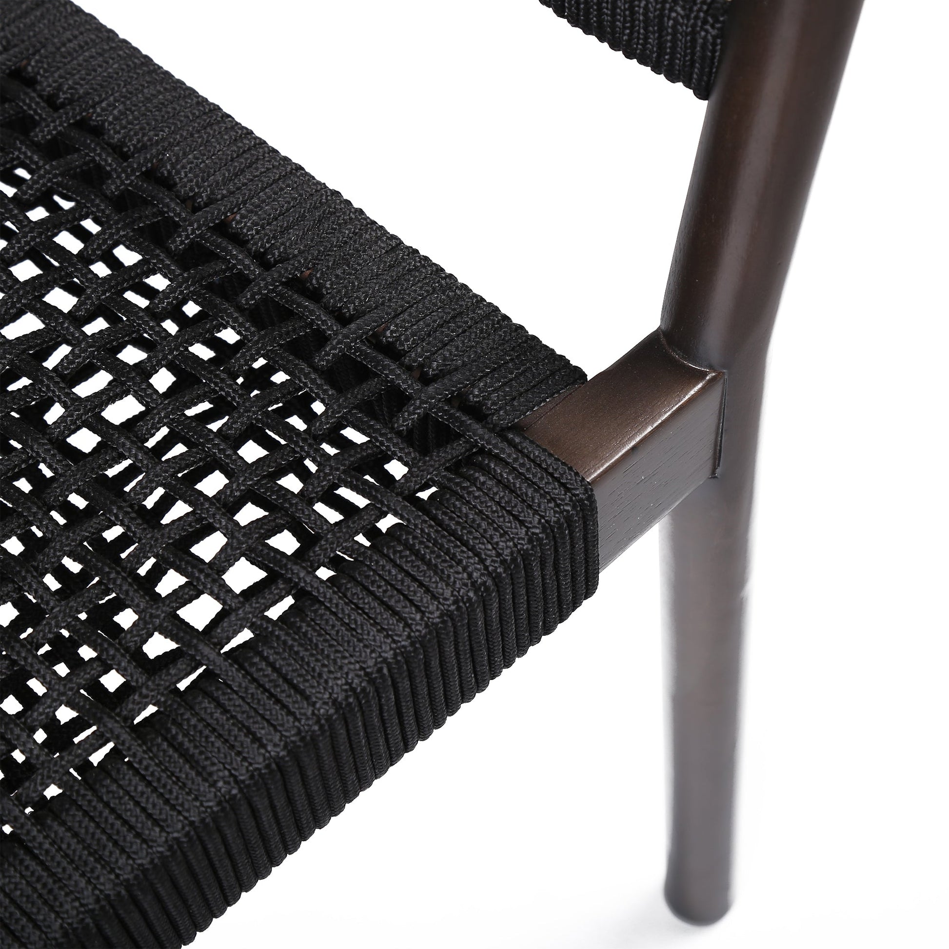 The Fineline and Doris Indoor Outdoor 5 Piece Dining Set in Dark Eucalyptus Wood with Super Stone and Black Rope is a durable and fashionable addition to any indoor or outdoor space. The masterfully crafted Fineline outdoor dining table features a unique tabletop made of a 5-layer composite with 2 layers of cement fiberboard surrounding the aluminum honeycomb core. This beautiful tabletop is durable and robust - capable of withstanding inclement weather and everyday wear and tear. Eucalyptus is a good choice for garden furniture as it has antifungal and antimicrobial properties. This means it has an inherent property to resist decay, rot and garden pests and can face the harshest of adverse climate-whether harsh sun, icy cold winds, cruel snow, or torrential rain. It is also rich in oil that naturally repels moisture and water. For these reasons, eucalyptus outdoor furniture can go on for many, many years and prove cost-effective to its owners. The Doris Chairs are wrapped in resilient regatta rope cording, providing supple support while still allowing for element passthrough - also enhancing your seating experience with a softness that rivals most fabrics. The open chair back creates a breathable seating option that keeps you comfortable while you are seated and the bonus of these chairs being stackable makes this set even more convenient. The Fineline and Doris Indoor Outdoor 5 Piece Dining Set in Dark Eucalyptus Wood with Super Stone and Black Rope is ideal for any home and comes complete with one Fineline Indoor Outdoor 80" Rectangle Dining Table in Dark Eucalyptus Wood and Super Stone and 4 Doris Indoor Outdoor Dining Chairs in Dark Eucalyptus Wood with Black Rope. Chair Dimensions: 26"W x 22"D x 31"H SH: 18". Table Dimensions: 81"W x 35"D x 30"H.