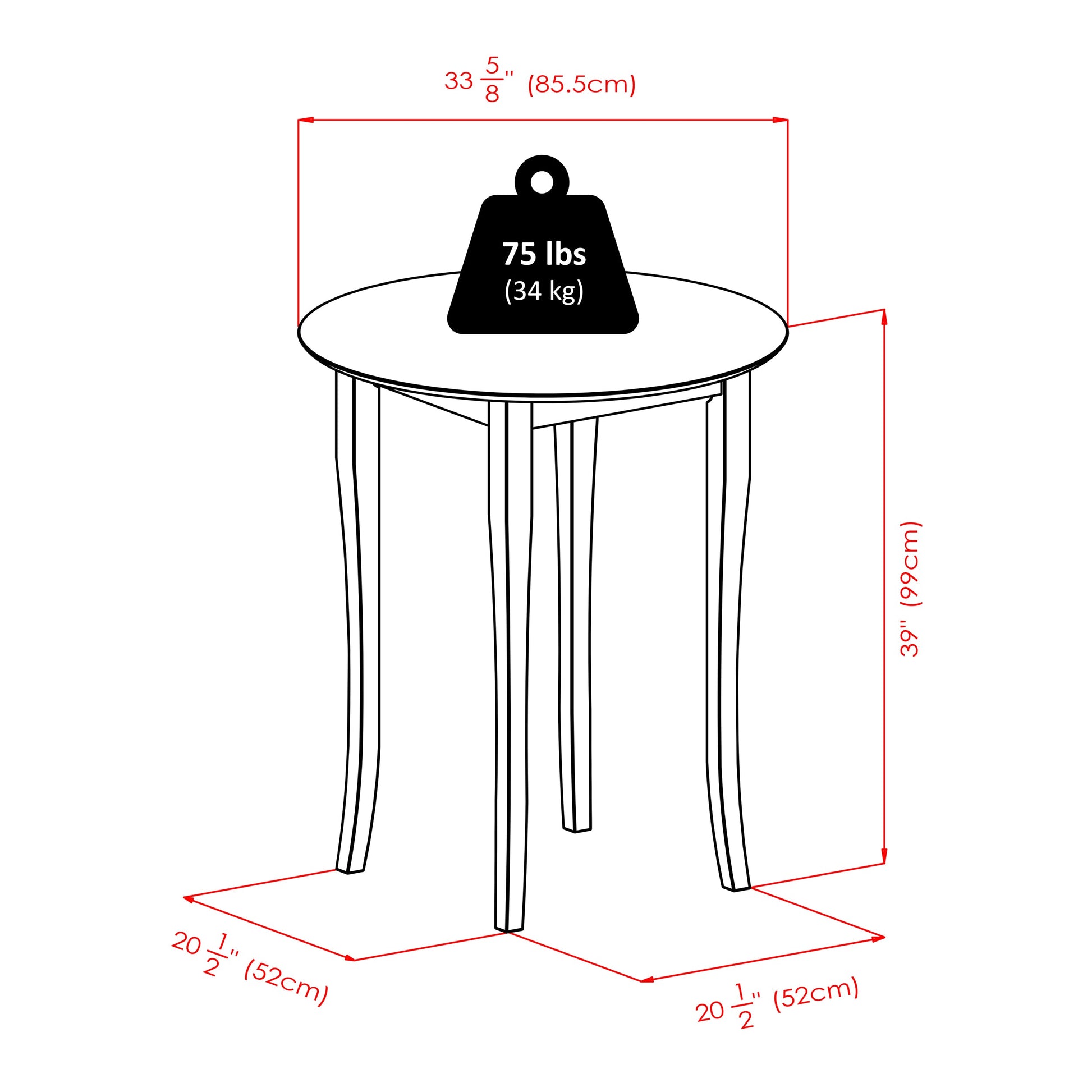 The set comes with the Round High Table and is a perfect addition to your kitchen or game room. Matching Ladder Back Stool is 29" Seat Height. Constructed from solid wood and finish in Antique Walnut. Ready to assemble.Dimensions : 33.66 in. Wide 33.66 in. Deep 38.98 in. High