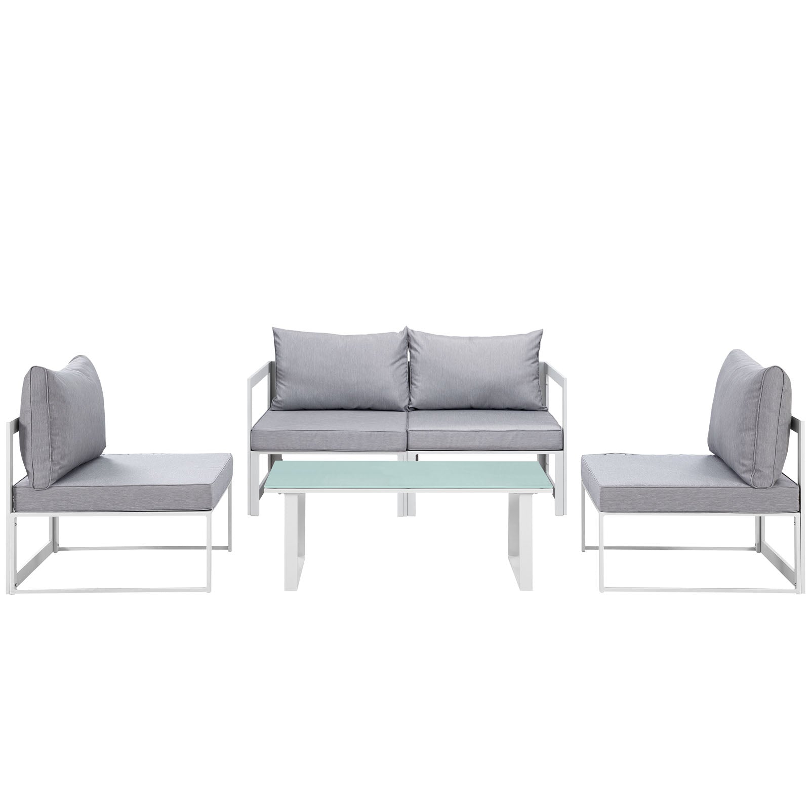 Fortuna 5 Piece Outdoor Patio Sectional Sofa Set White Gray EEI-1724-WHI-GRY-SET