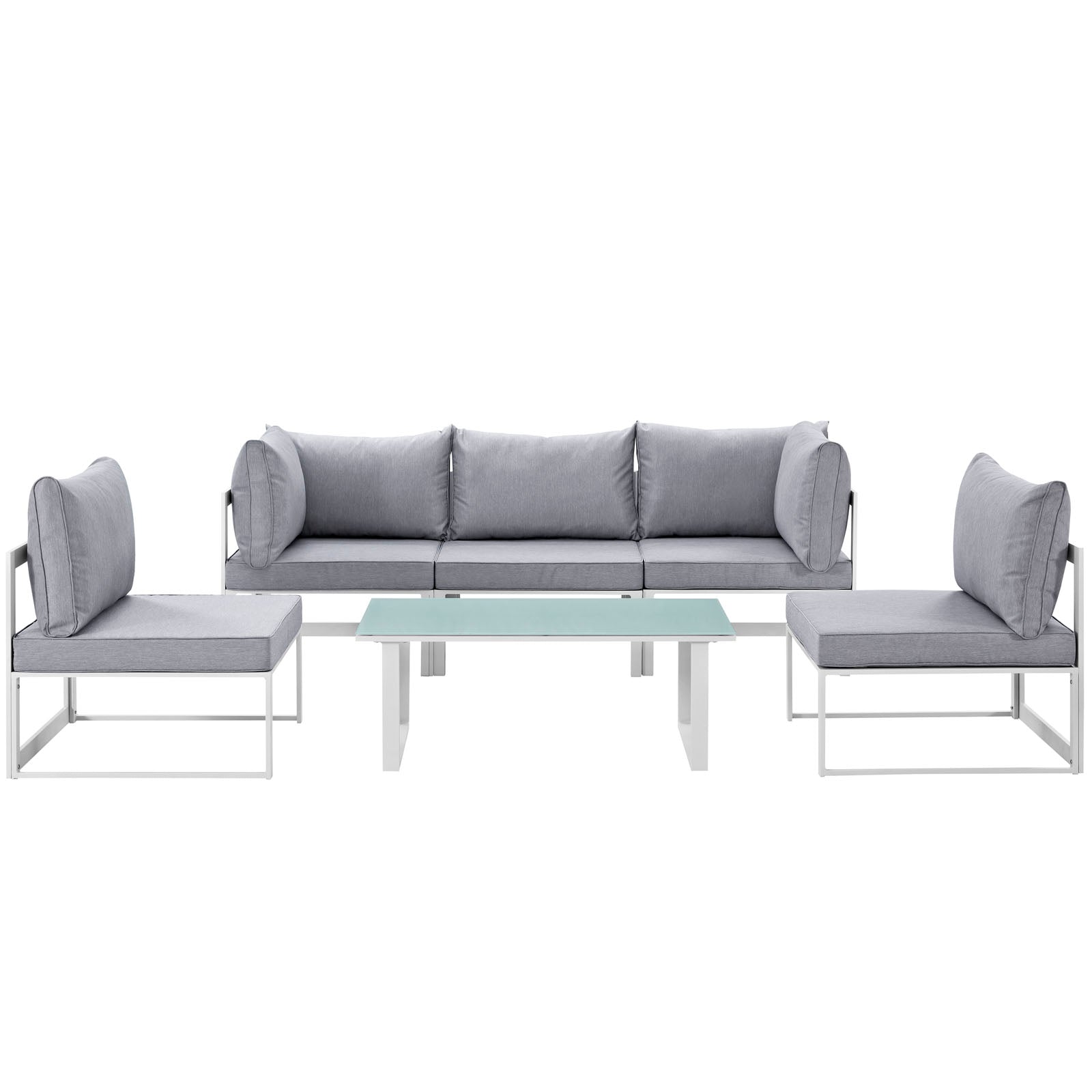 Fortuna 6 Piece Outdoor Patio Sectional Sofa Set White Gray EEI-1726-WHI-GRY-SET