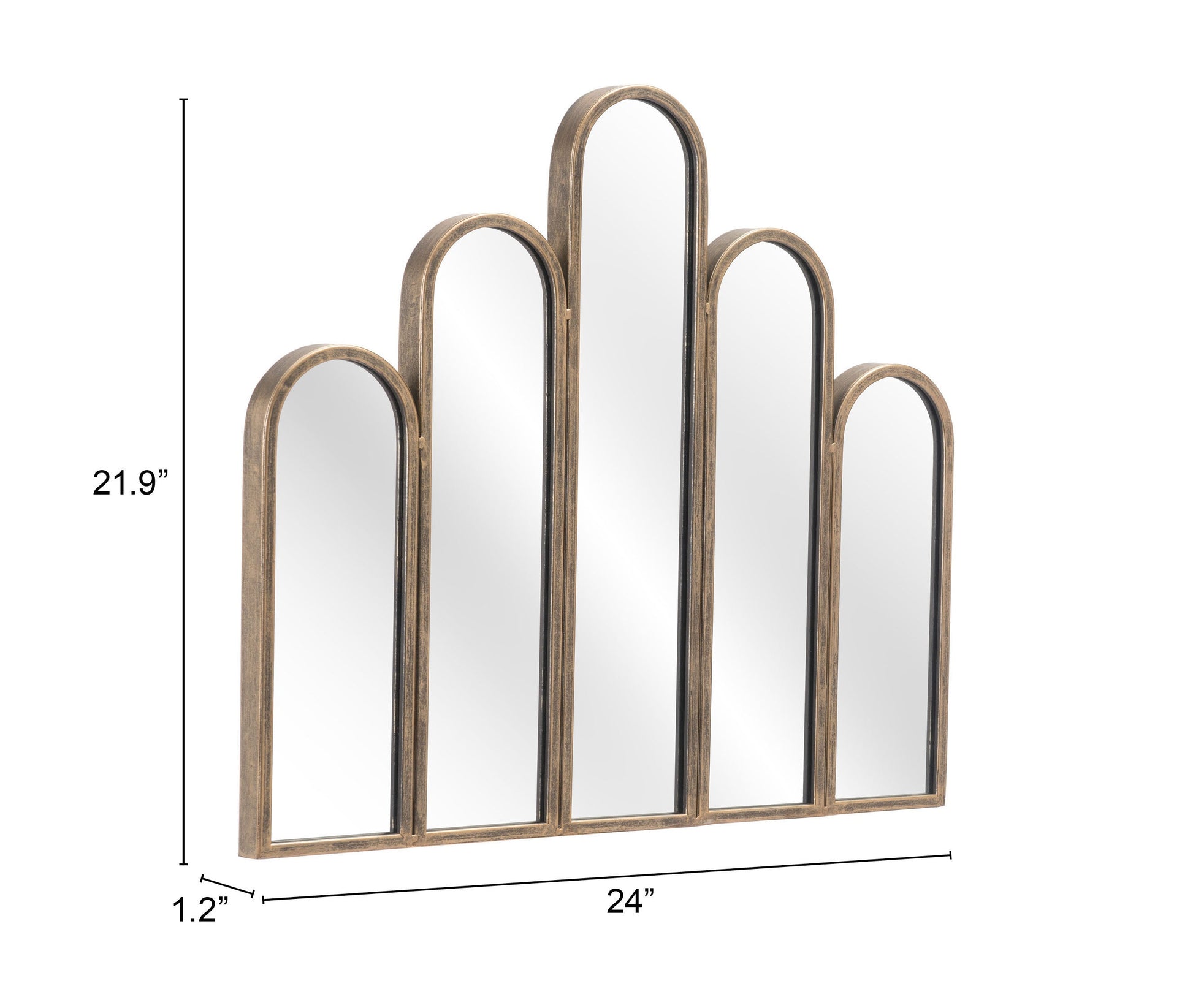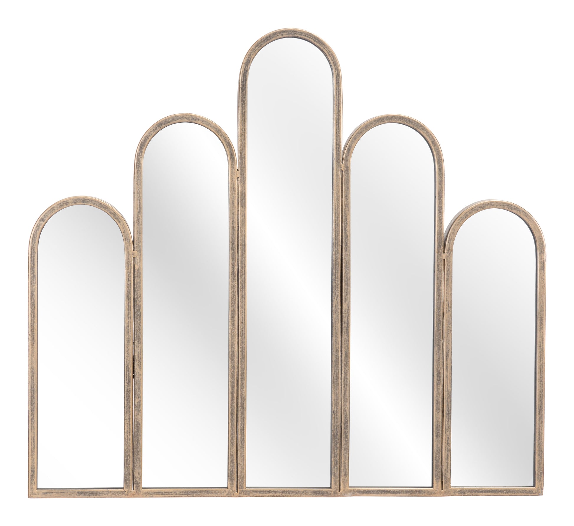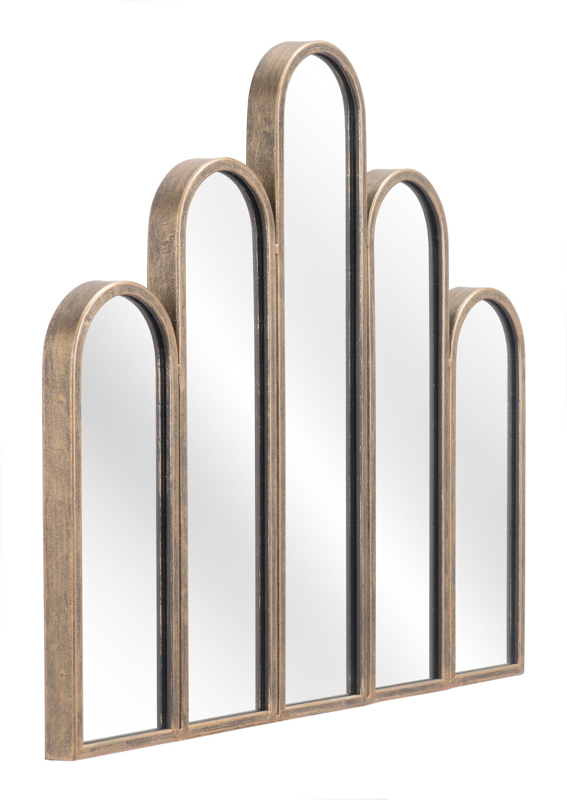 With a deco shape and design, the Fountain Mirror ha a powder coated steel frame. This decorative mirror looks good in any entry way, living area, or bathroom.