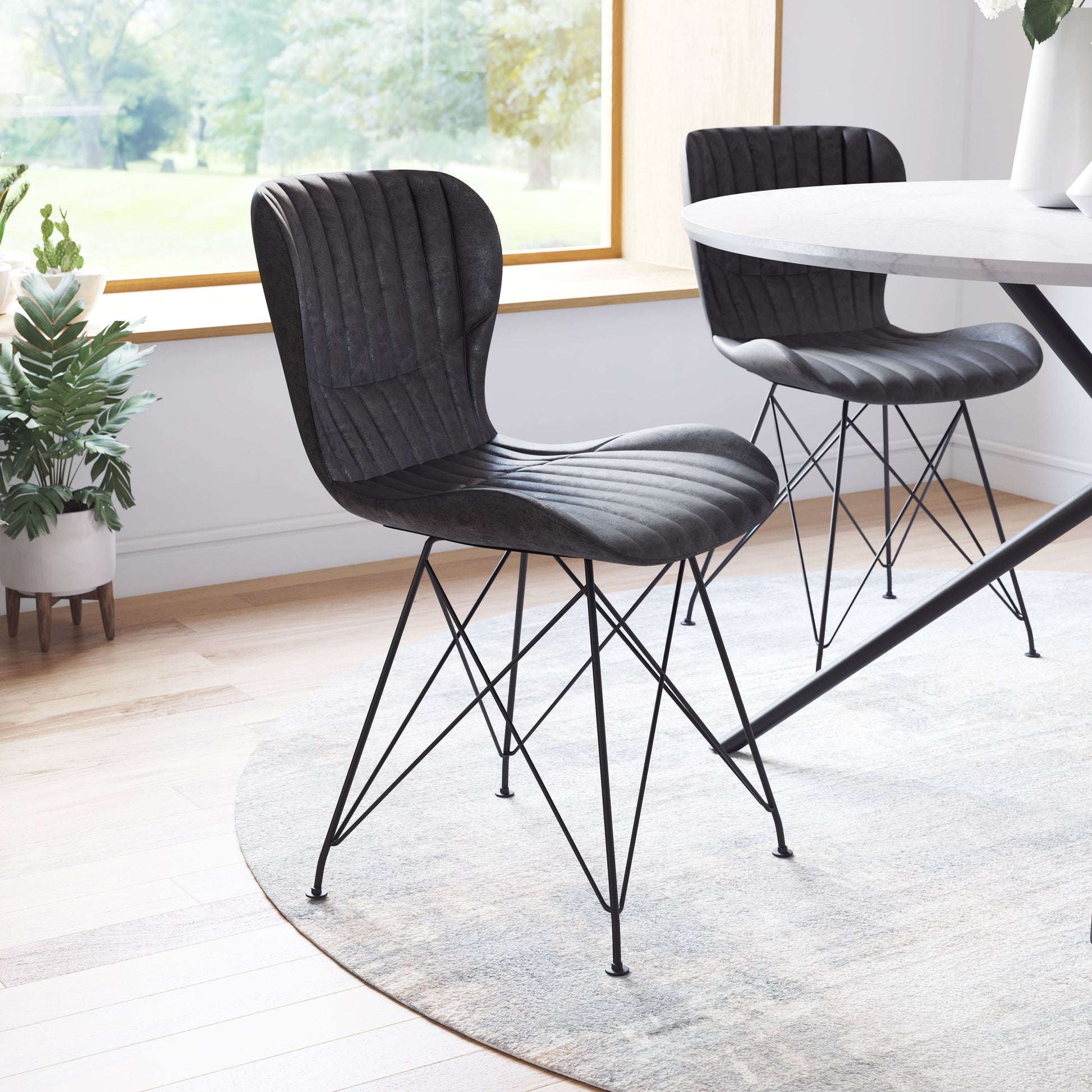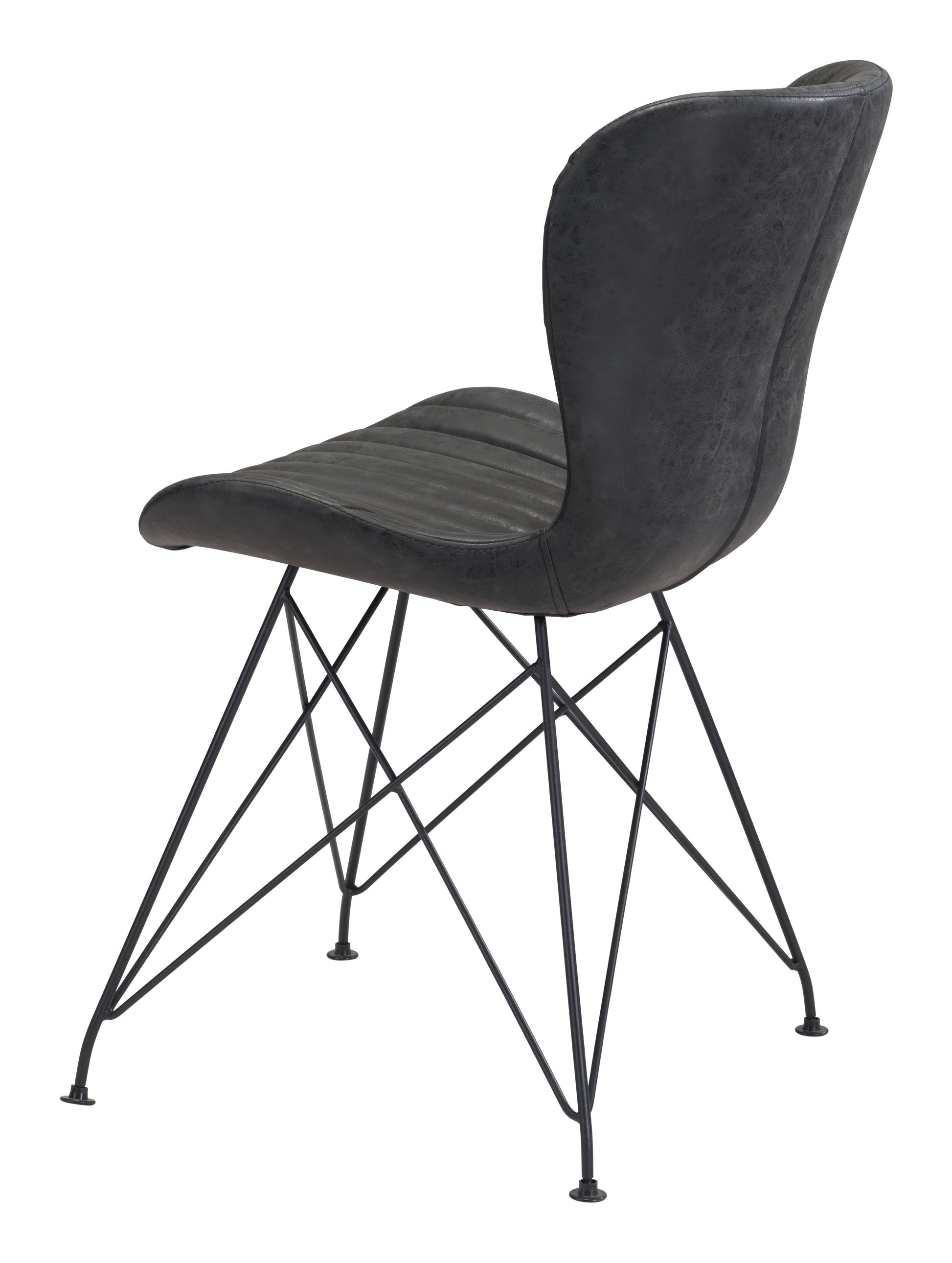 With a classic modern Eiffel base, the Gabby Chair has a steel frame with powder coated steel legs and is wrapped in vinyl. This chair completes any dining or workspace, in any design, modern minimal or boho industrial.