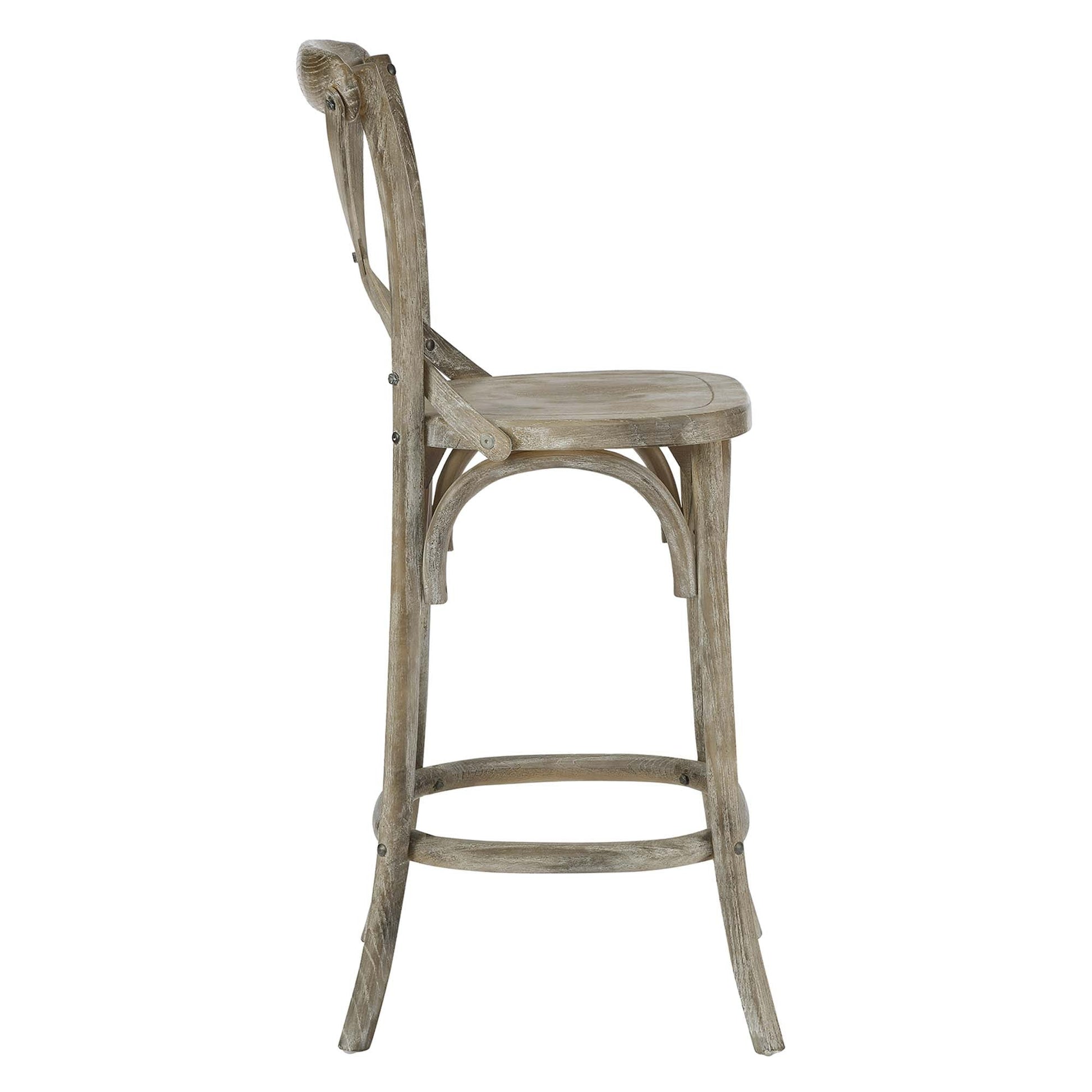 Introduce feelings of nostalgia as you gather around the kitchen counter for a quick breakfast or dinner with friends with this charming counter stool. Blending farmhouse charm with modern style, this counter-height bar stool features an X-brace back and stretchers between splayed legs, creating a perfect balance of aesthetics and functionality. Crafted from durable elm wood, this stool is built to last, ensuring sturdy construction for everyday use. The non-marking foot caps protect your flooring, making it an ideal choice for any dining space or kitchen area.