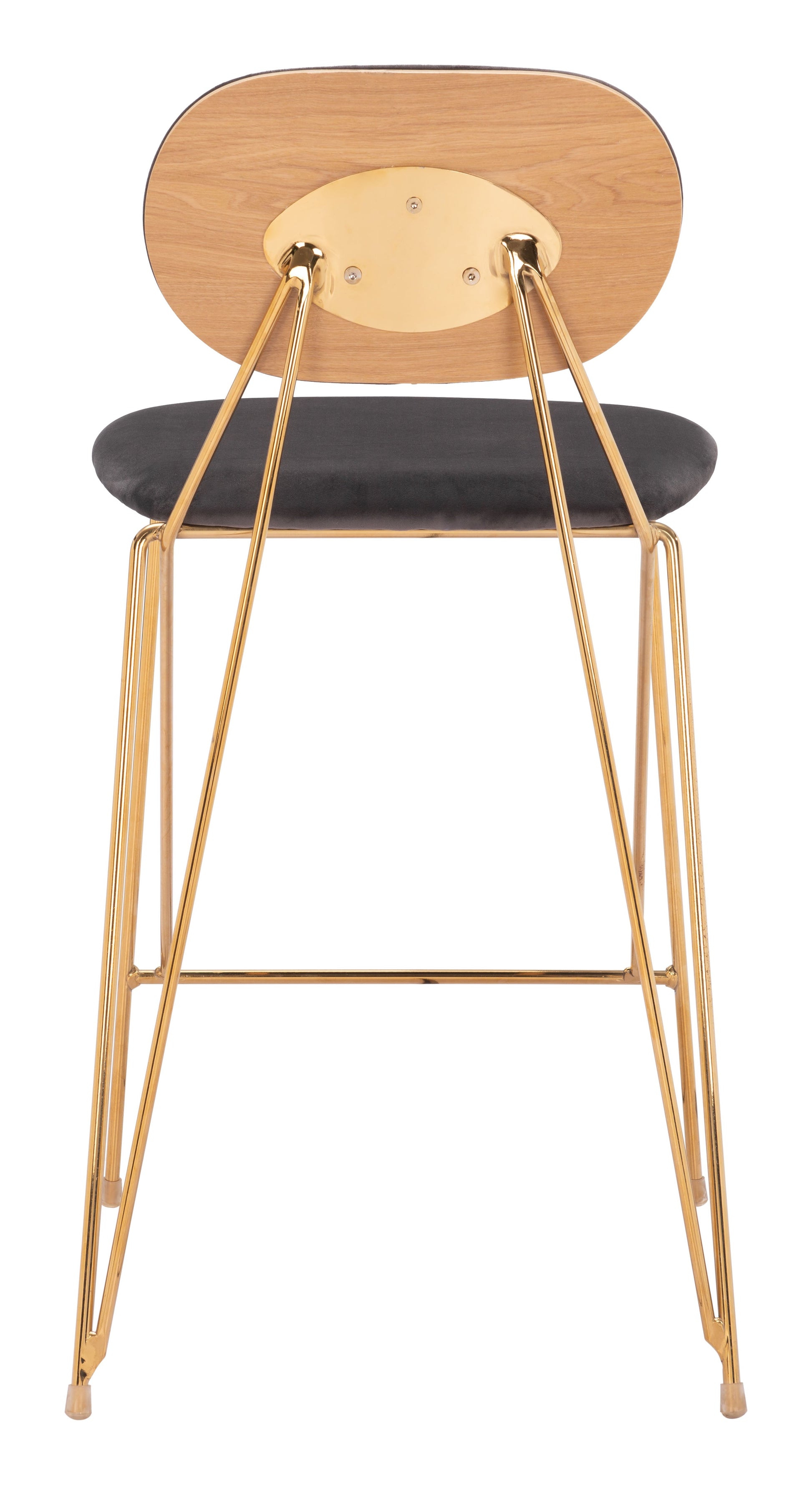 This counter stool has a slender frame that combines mid-century modern with glamour and decorative elements and works well in spaces, residential or hospitality.