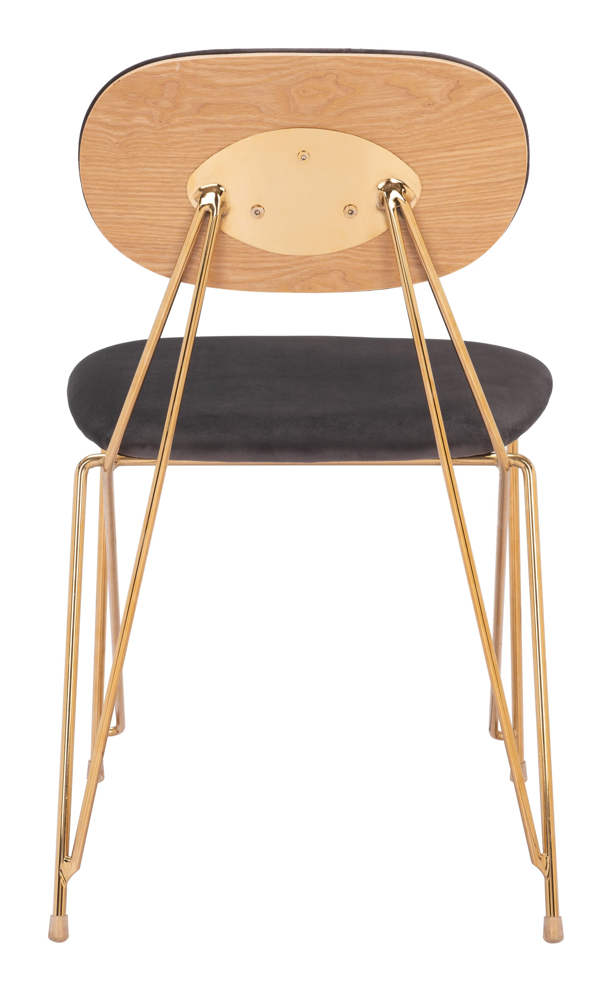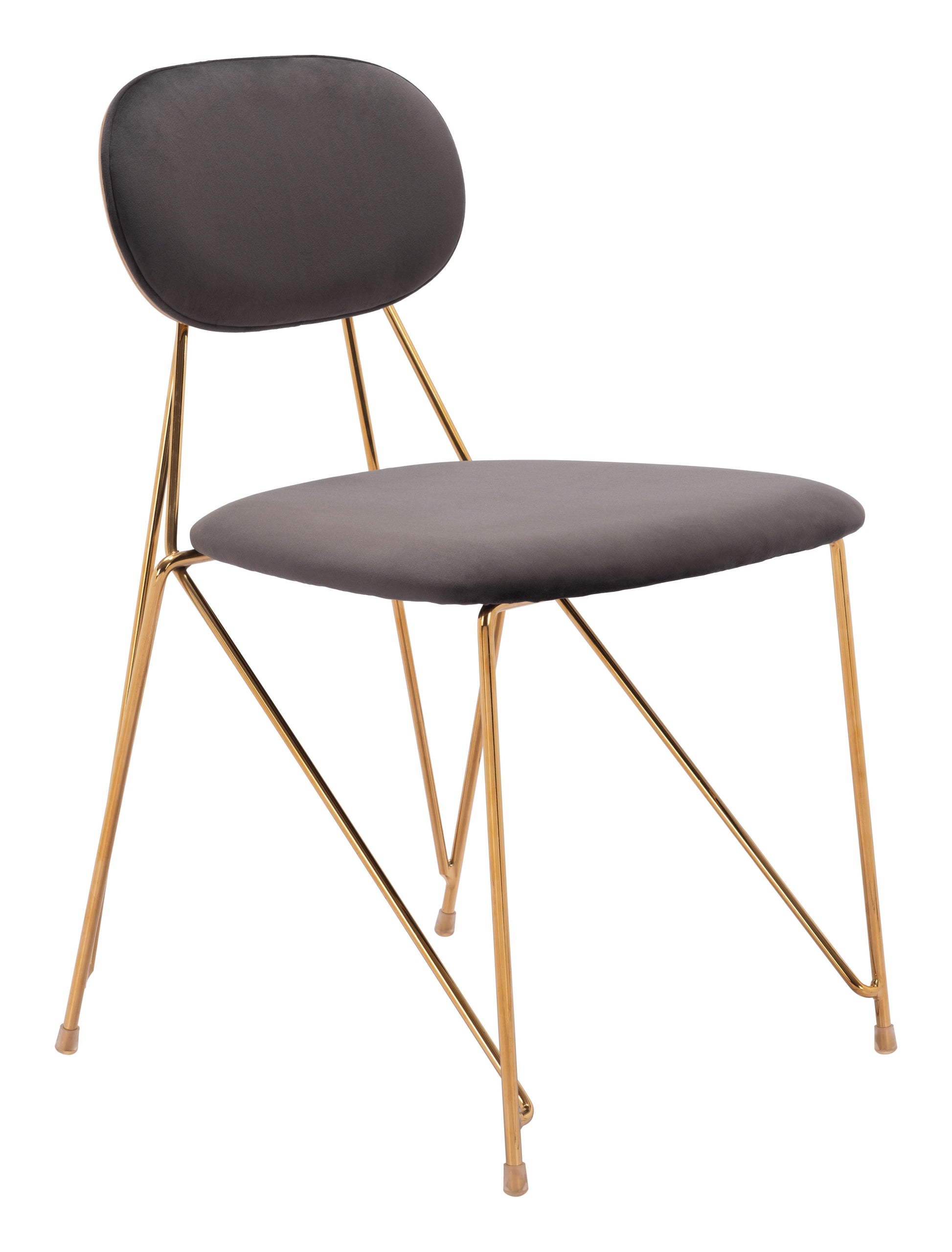 This dining chair has a slender frame that combines mid-century modern with glamour and decorative elements and works well in spaces, residential or hospitality.