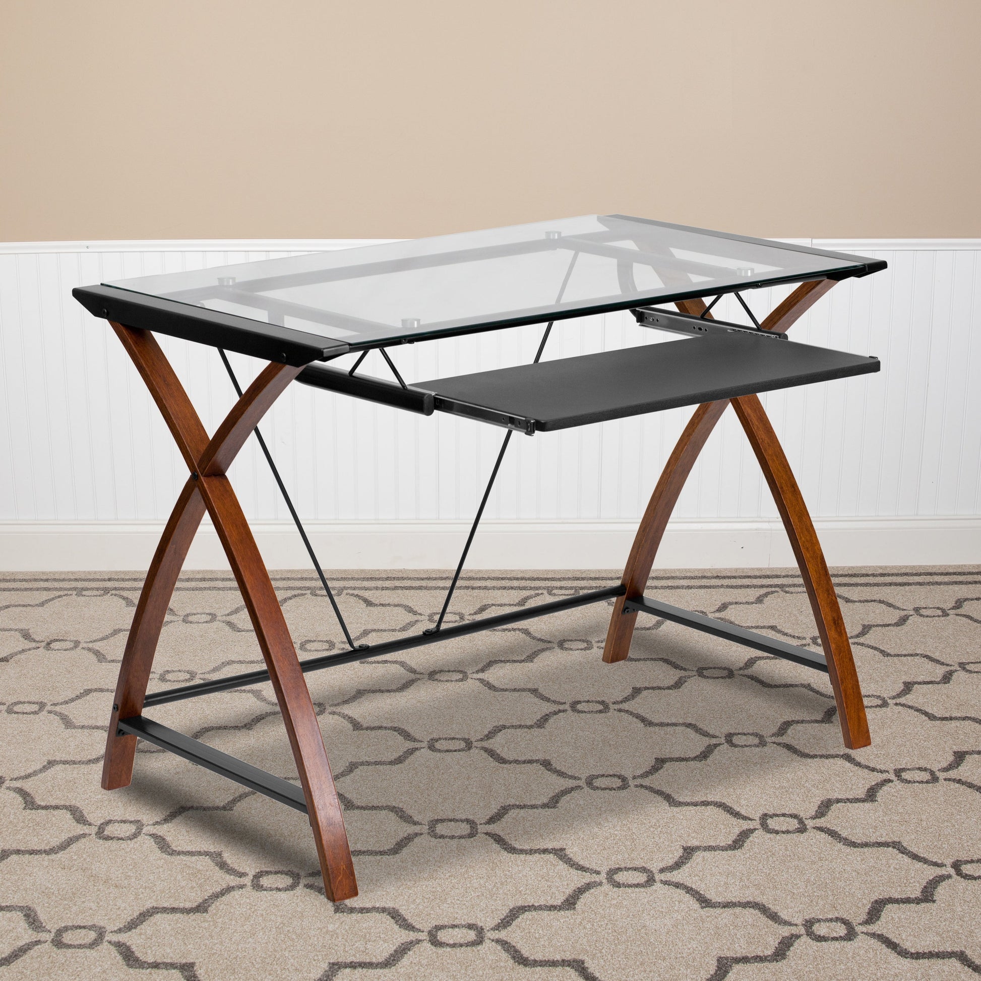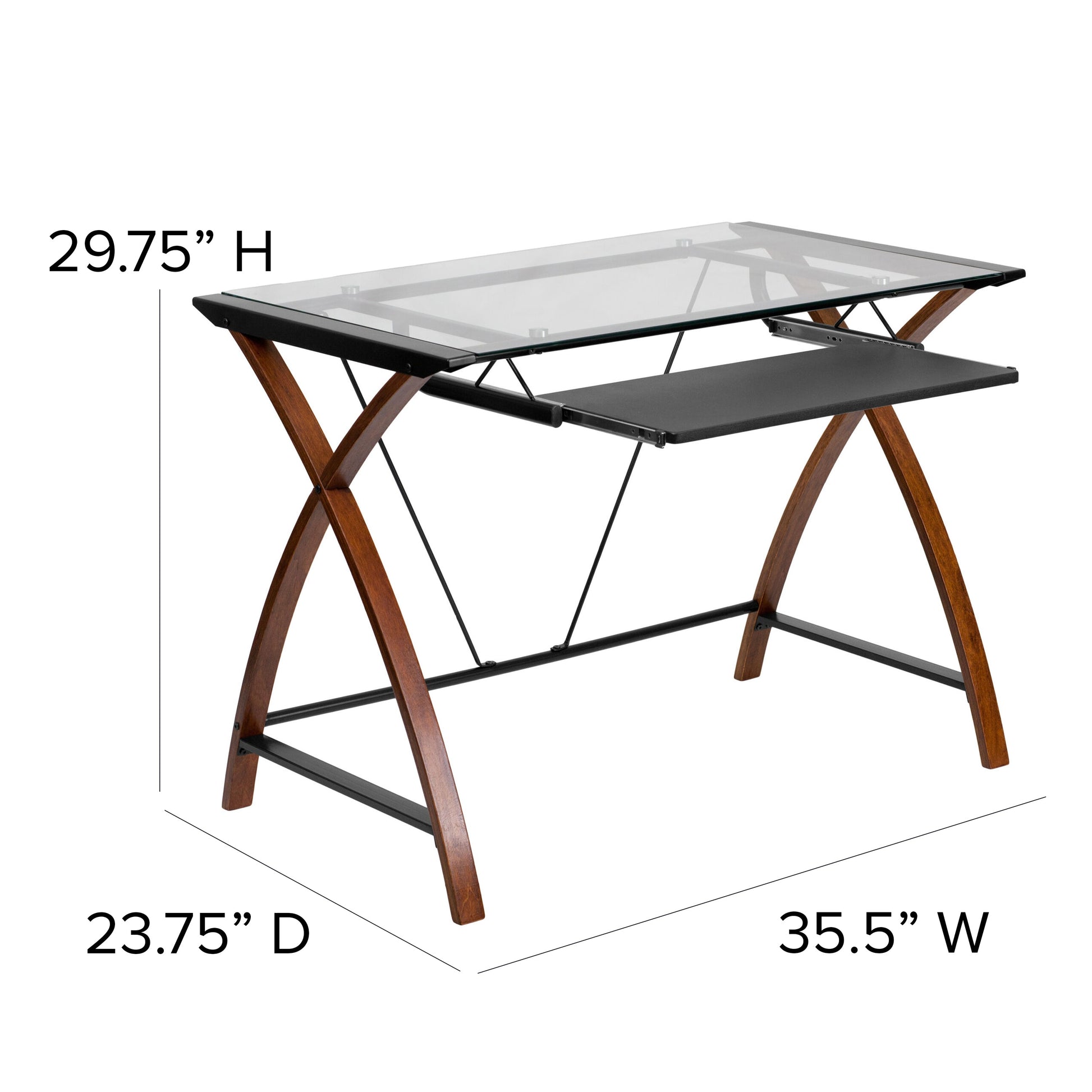 Jude Glass Computer Desk with Pull-Out Keyboard Tray and Crisscross Frame Dimensions: 35.5"W x 23.75"D x 29.75"H