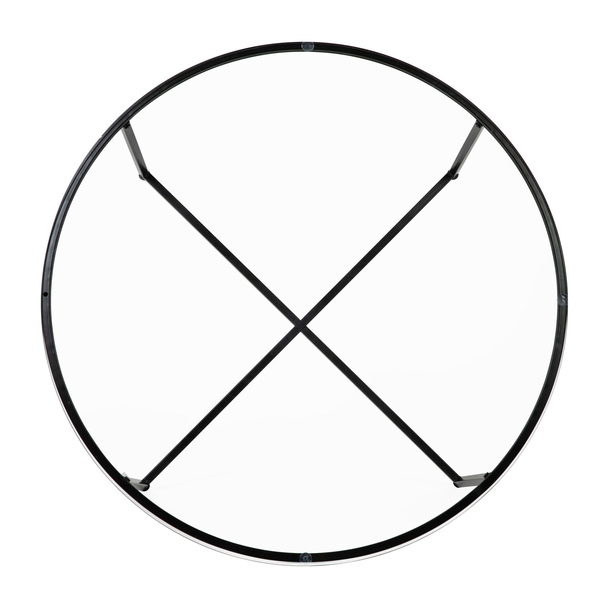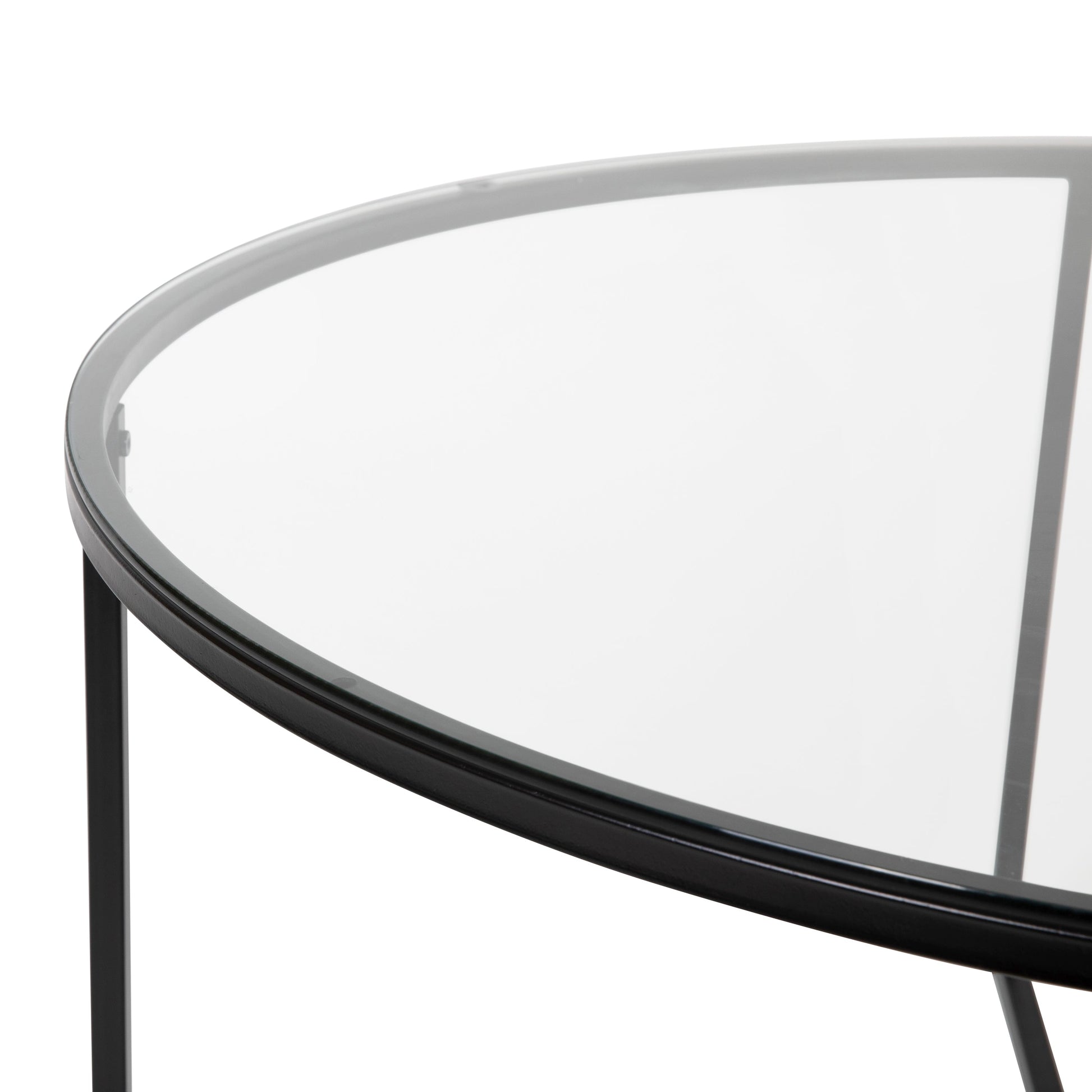 Greenwich Collection Coffee Table - Modern Clear Glass Accent Table with Crisscross Matte Black Frame Dimensions: 35.5"W x 35.5"D x 19.25"H
