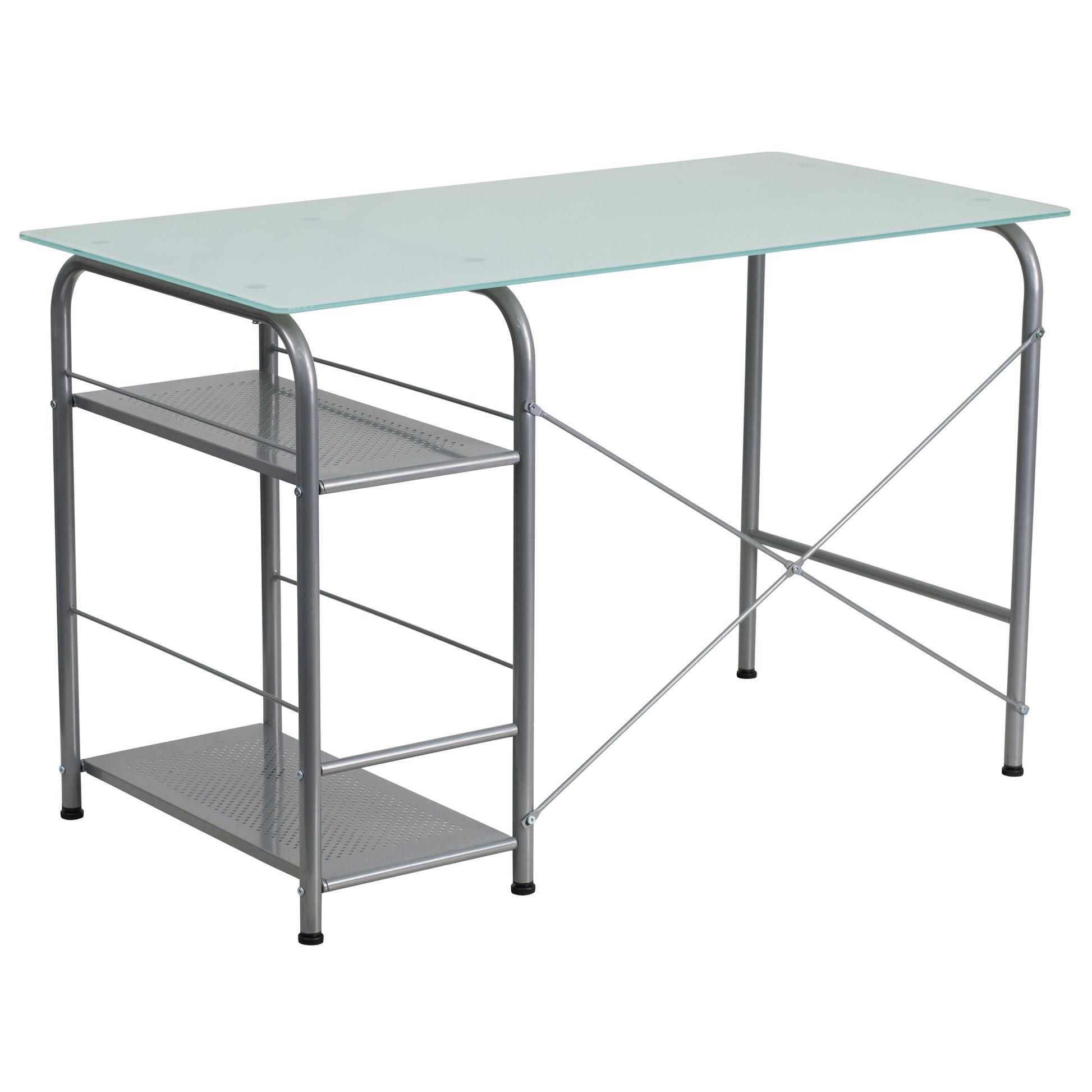 Glass Computer Desk with Open Storage Dimensions: 47.25"W x 23.5"D x 29.5"H