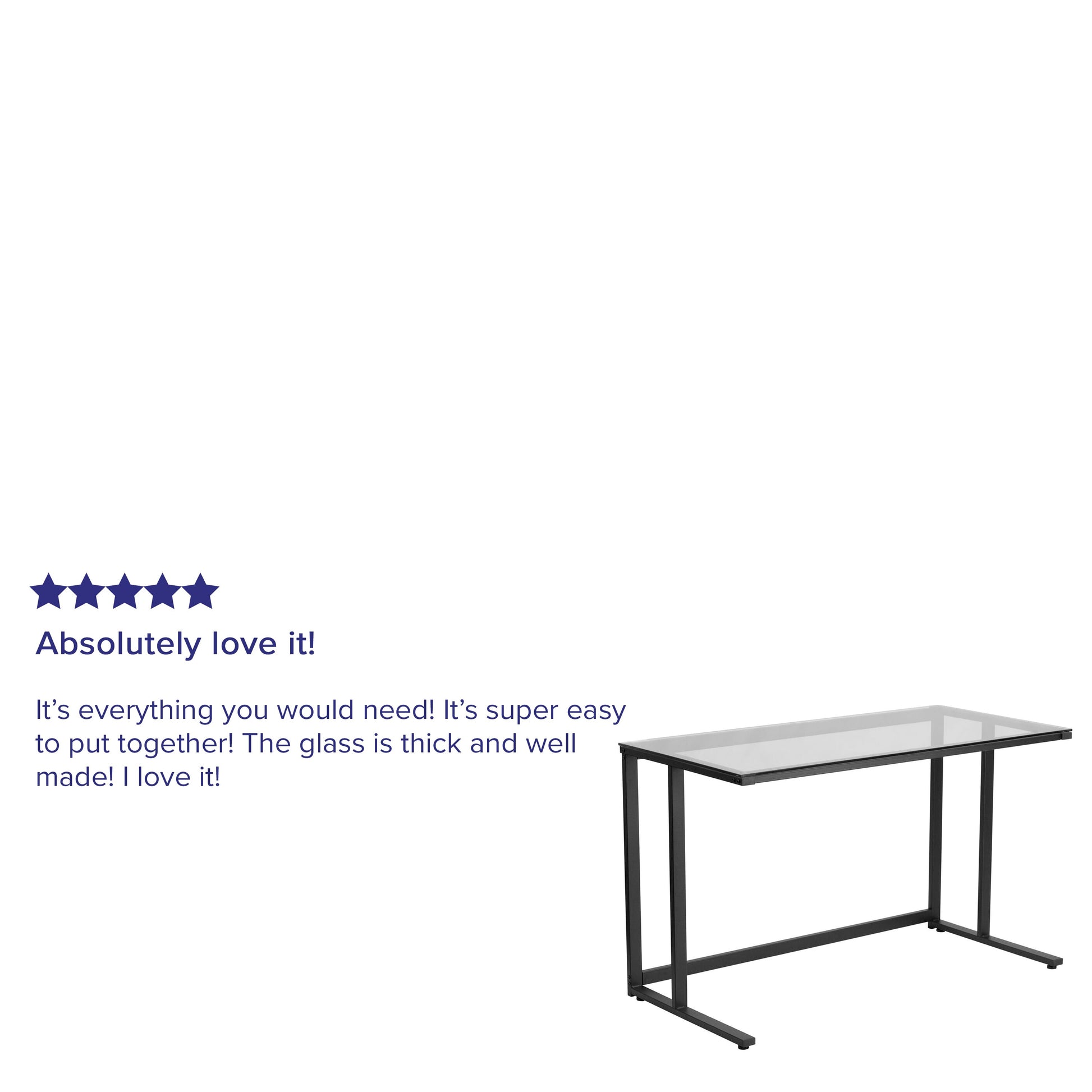 Singleton Glass Desk with Black Pedestal Metal Frame Dimensions: 47.25"W x 23.5"D x 29.25"H