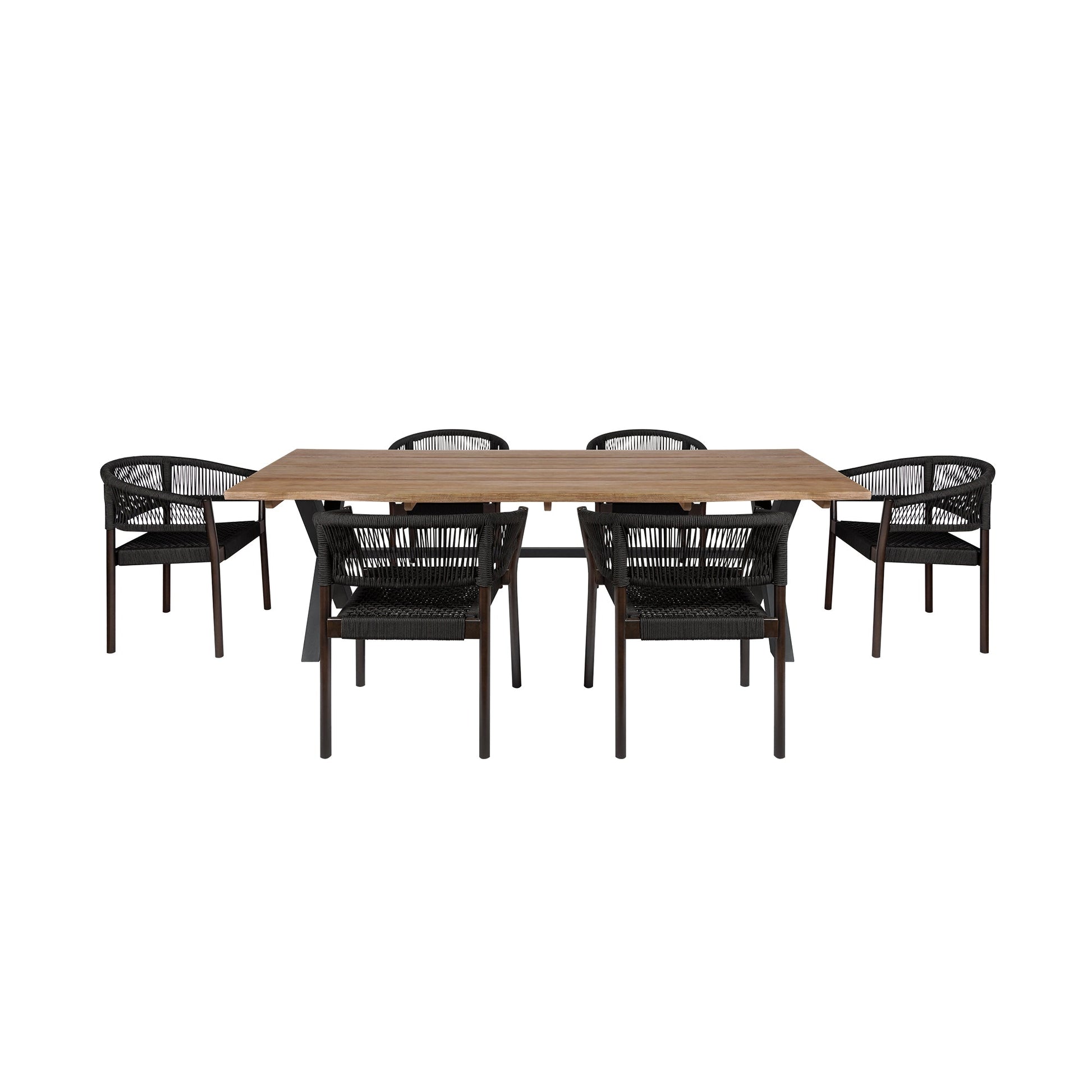Glendora Doris Outdoor Patio 7 Piece Live Edge Dining Set in Eucalyptus Wood and Black Rope