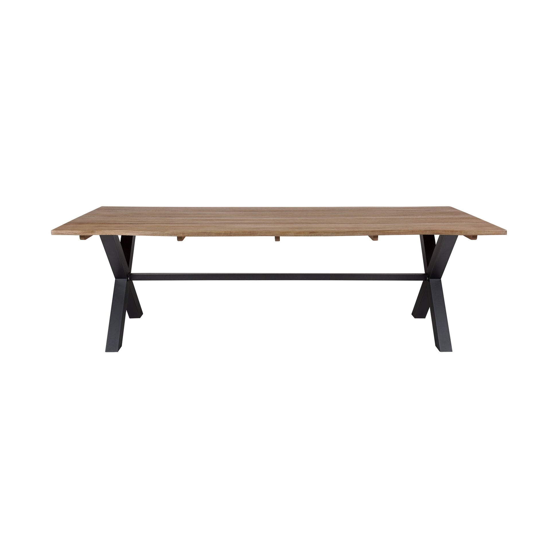 Glendora Outdoor Patio Live Edge Dining Table in Eucalyptus Wood with Black Metal Base
