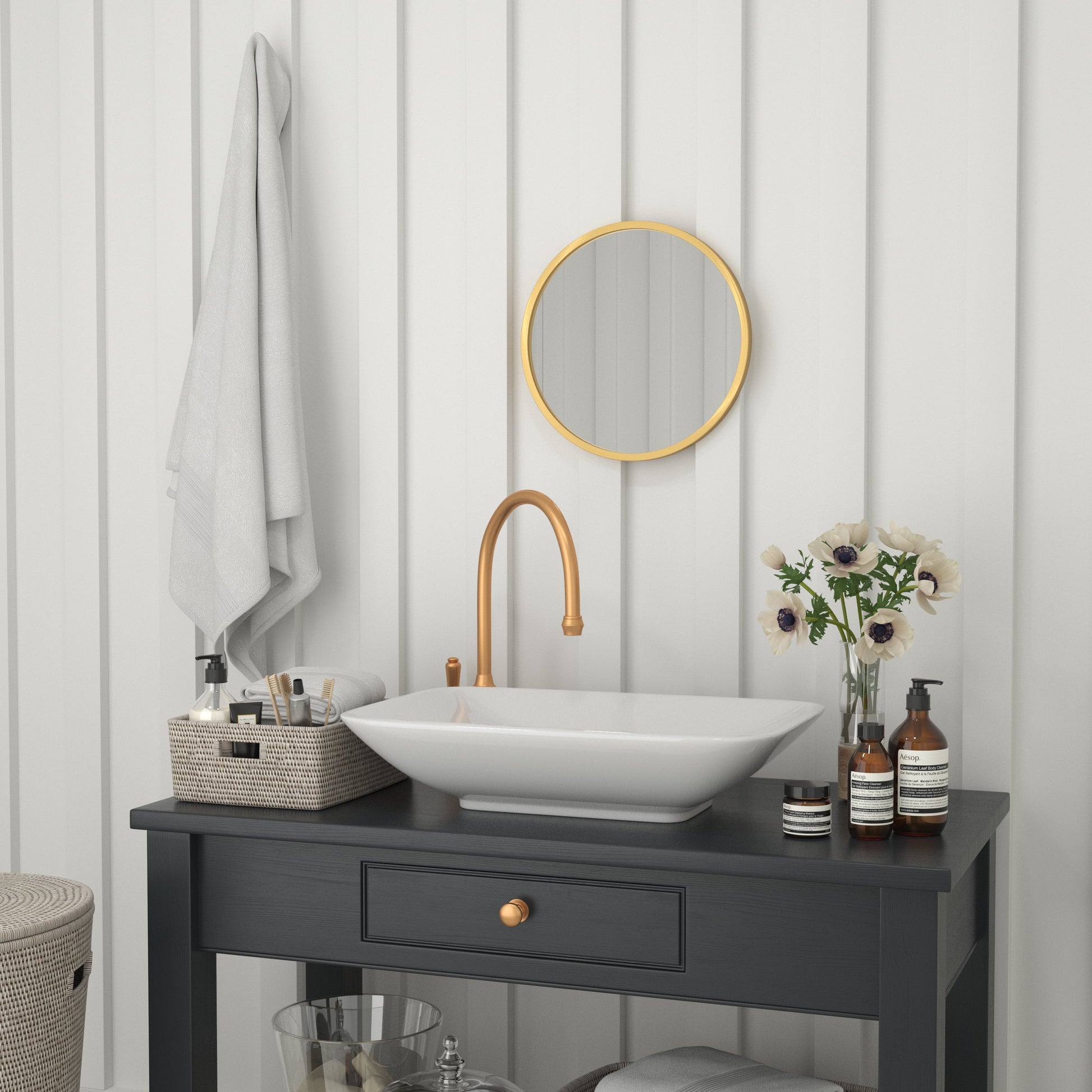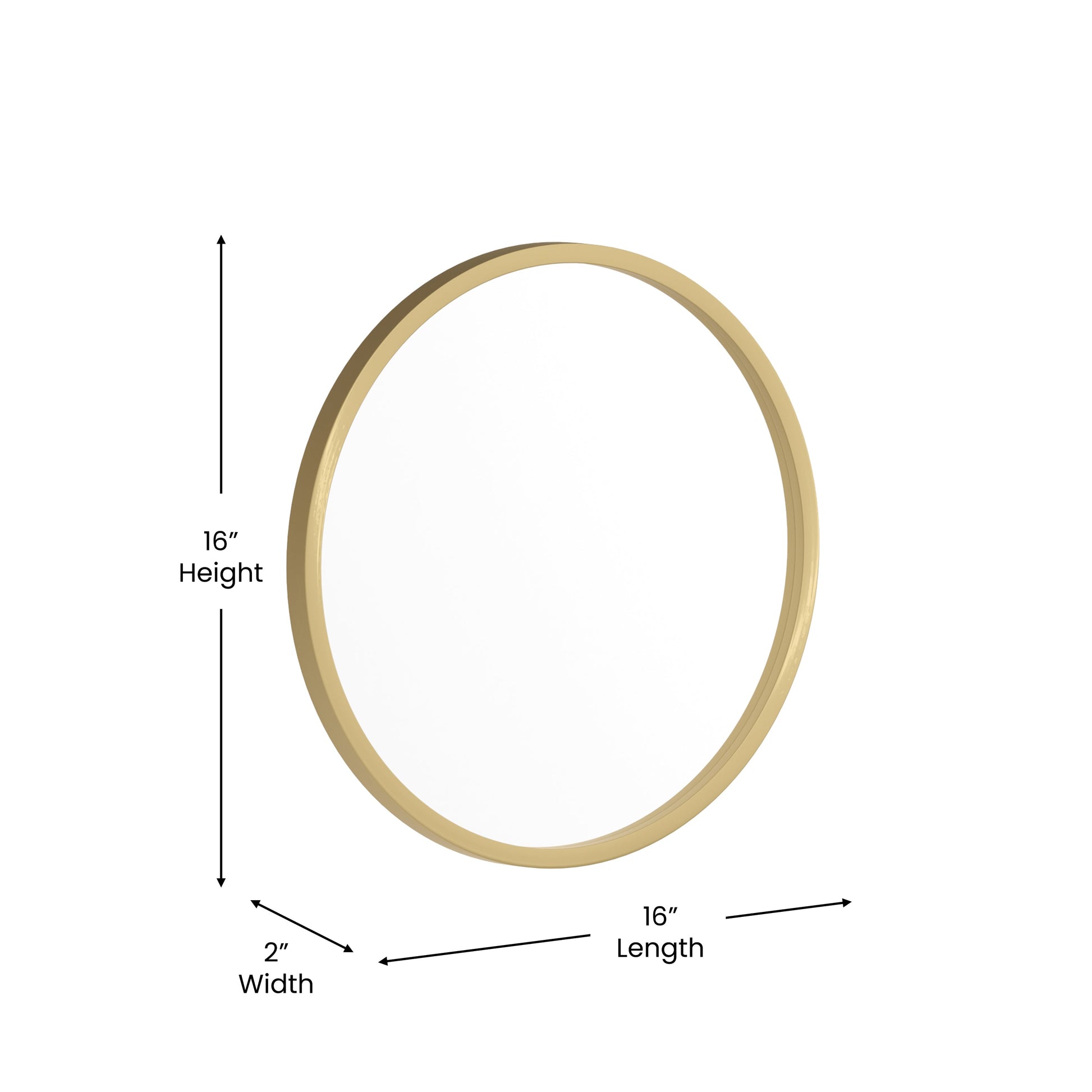 Julianne 16" Round Gold Metal Framed Wall Mirror - Large Accent Mirror for Bathroom, Vanity, Entryway, Dining Room, & Living Room Dimensions: 16"W x 0.78"D x 16"H