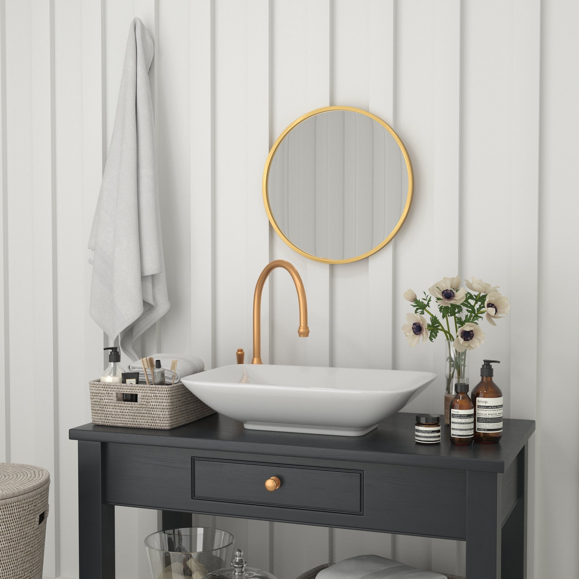 Julianne 20" Round Gold Metal Framed Wall Mirror - Large Accent Mirror for Bathroom, Vanity, Entryway, Dining Room, & Living Room Dimensions: 20"W x 0.78"D x 20"H