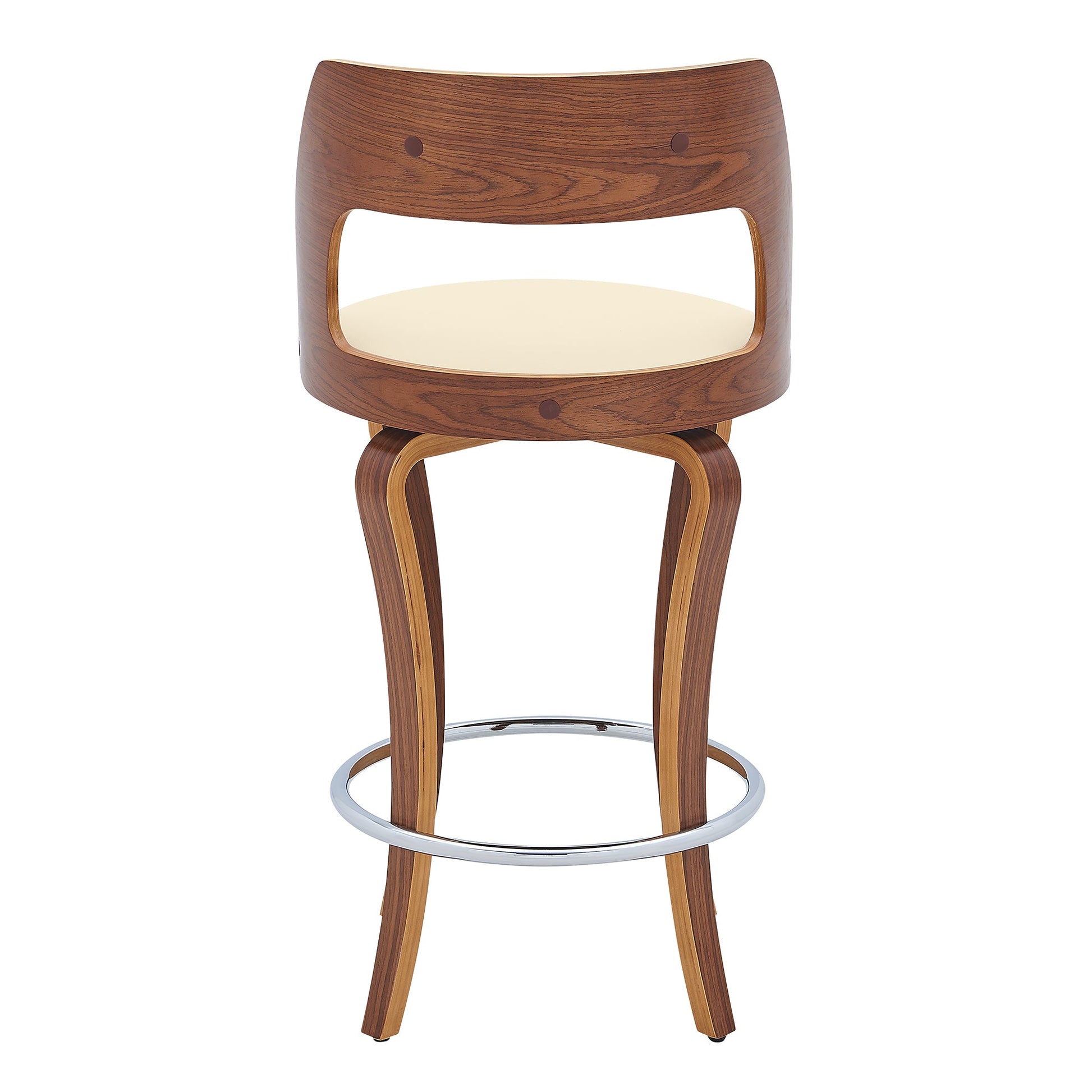 Elevate your home aesthetic with this modern bar stool that seamlessly combines style and comfort. Featuring a foam-padded cushion wrapped in luxurious faux leather upholstery, this bar stool is designed to provide exceptional comfort while enhancing your decor. The elegant walnut wood chair back adds a touch of sophistication, making it a versatile piece that can blend into any home environment.