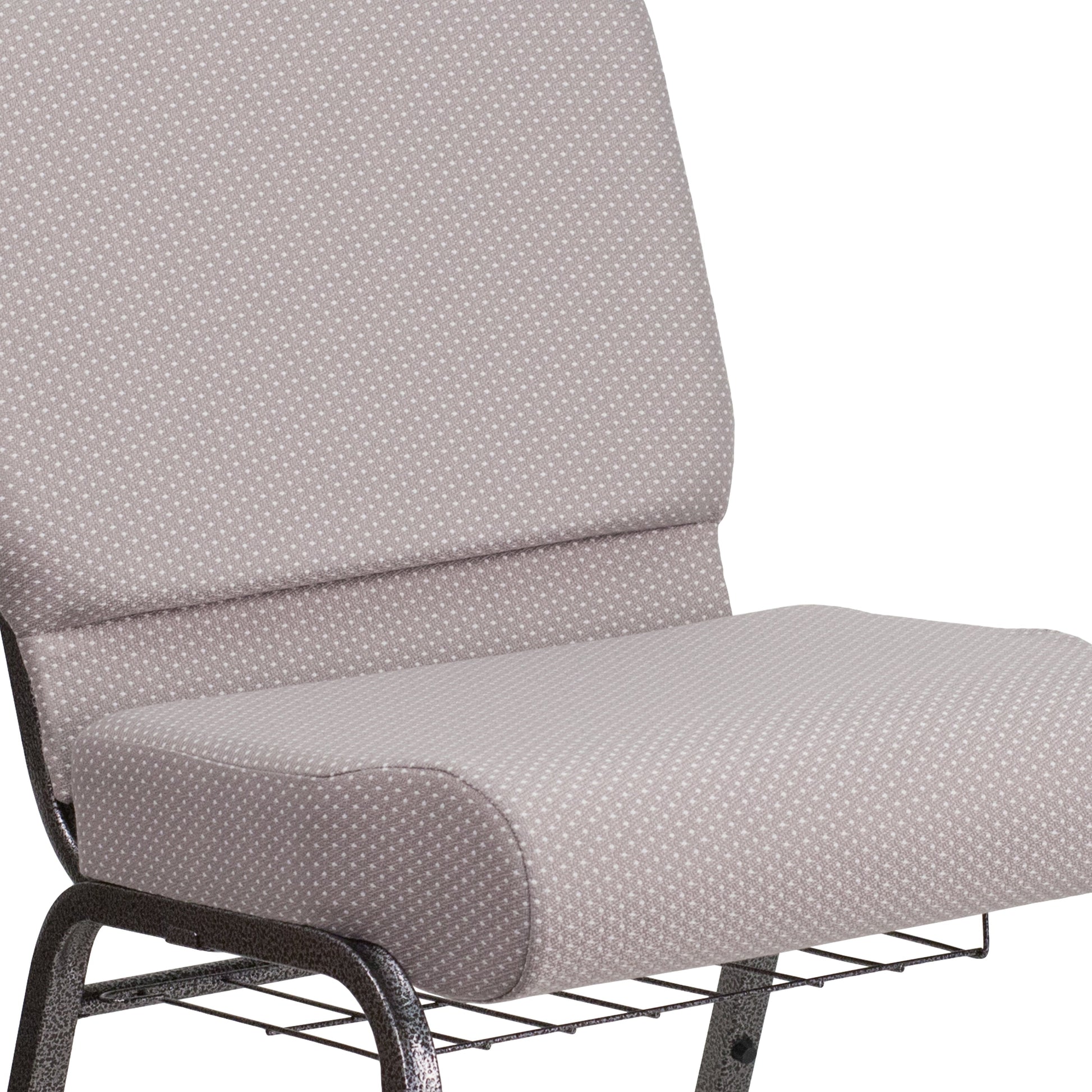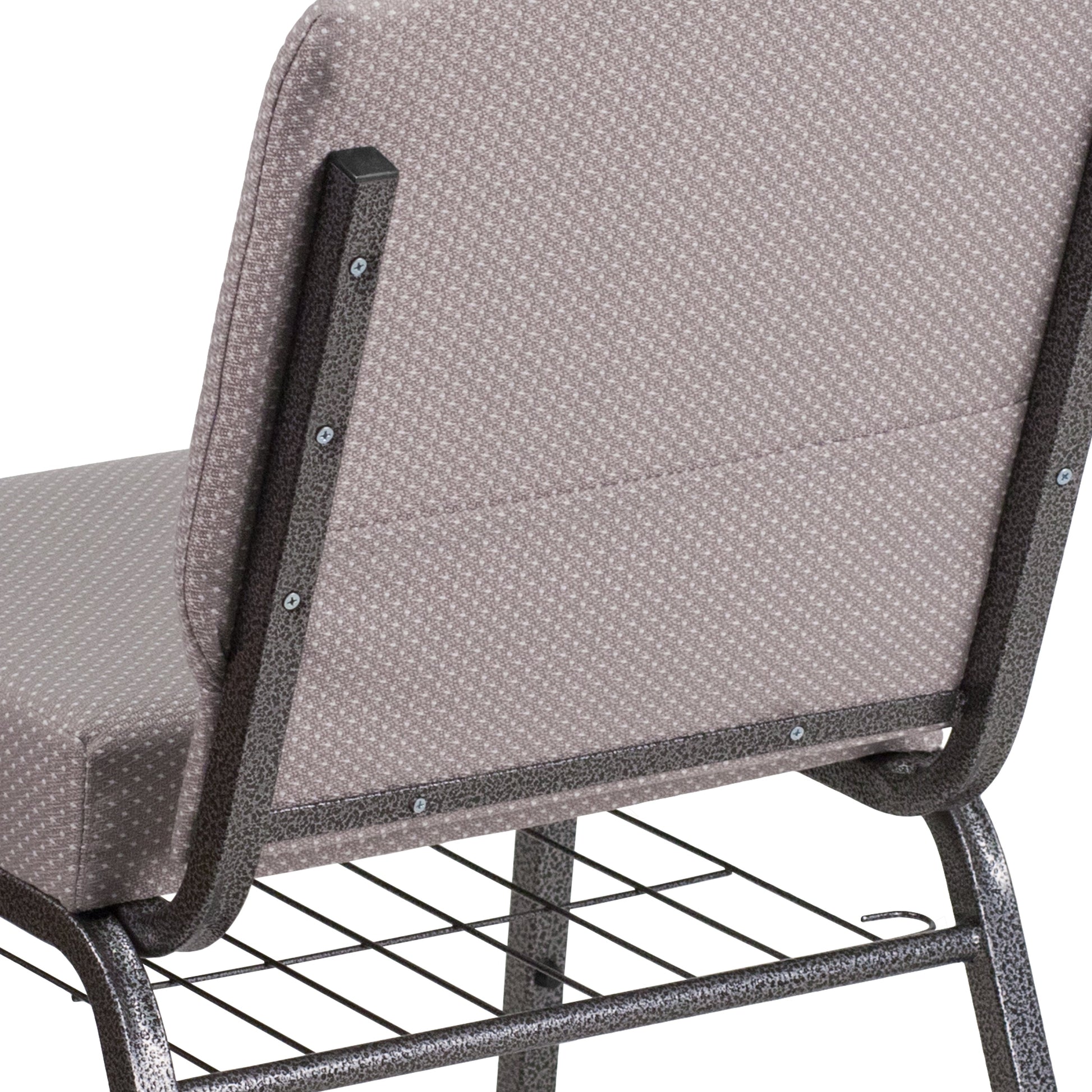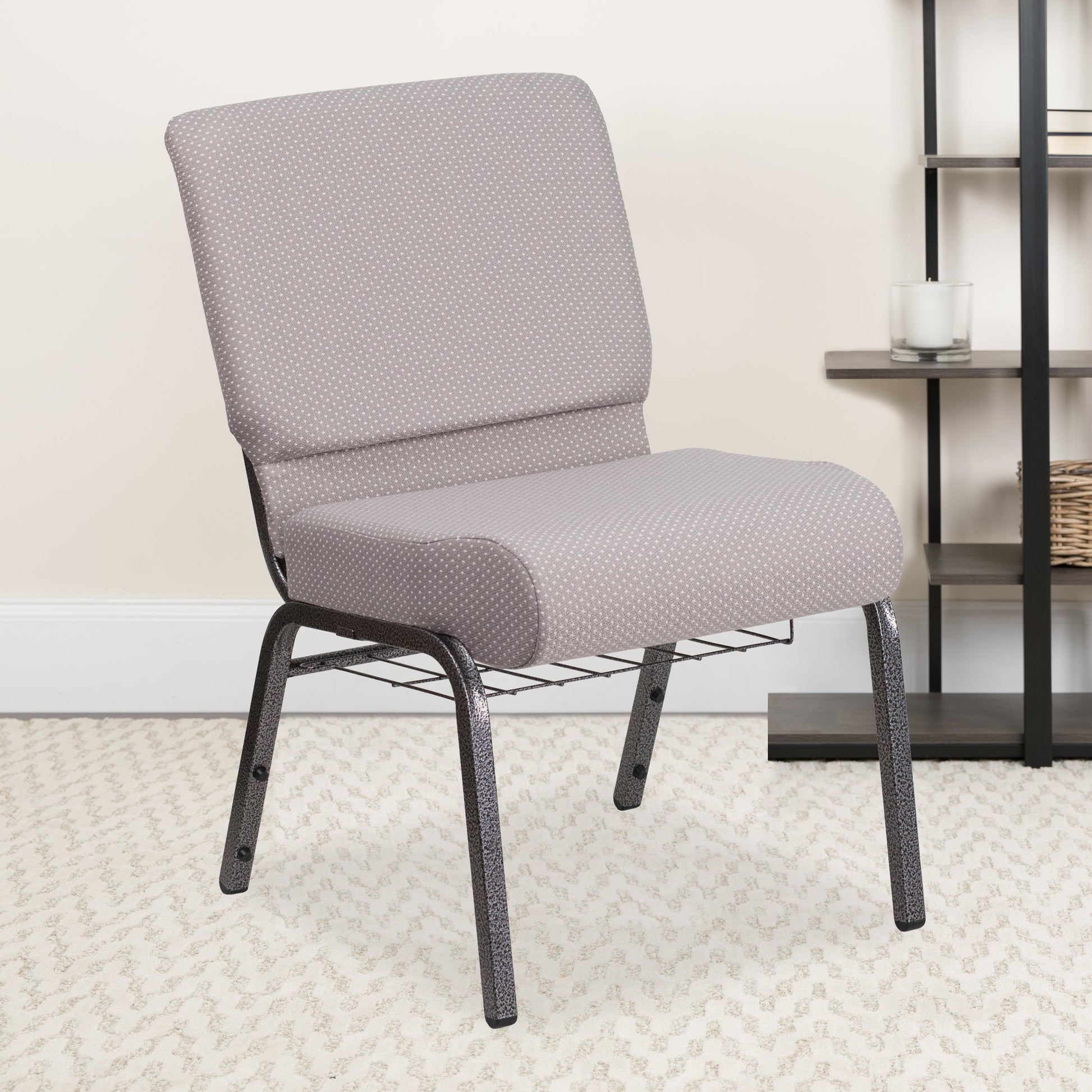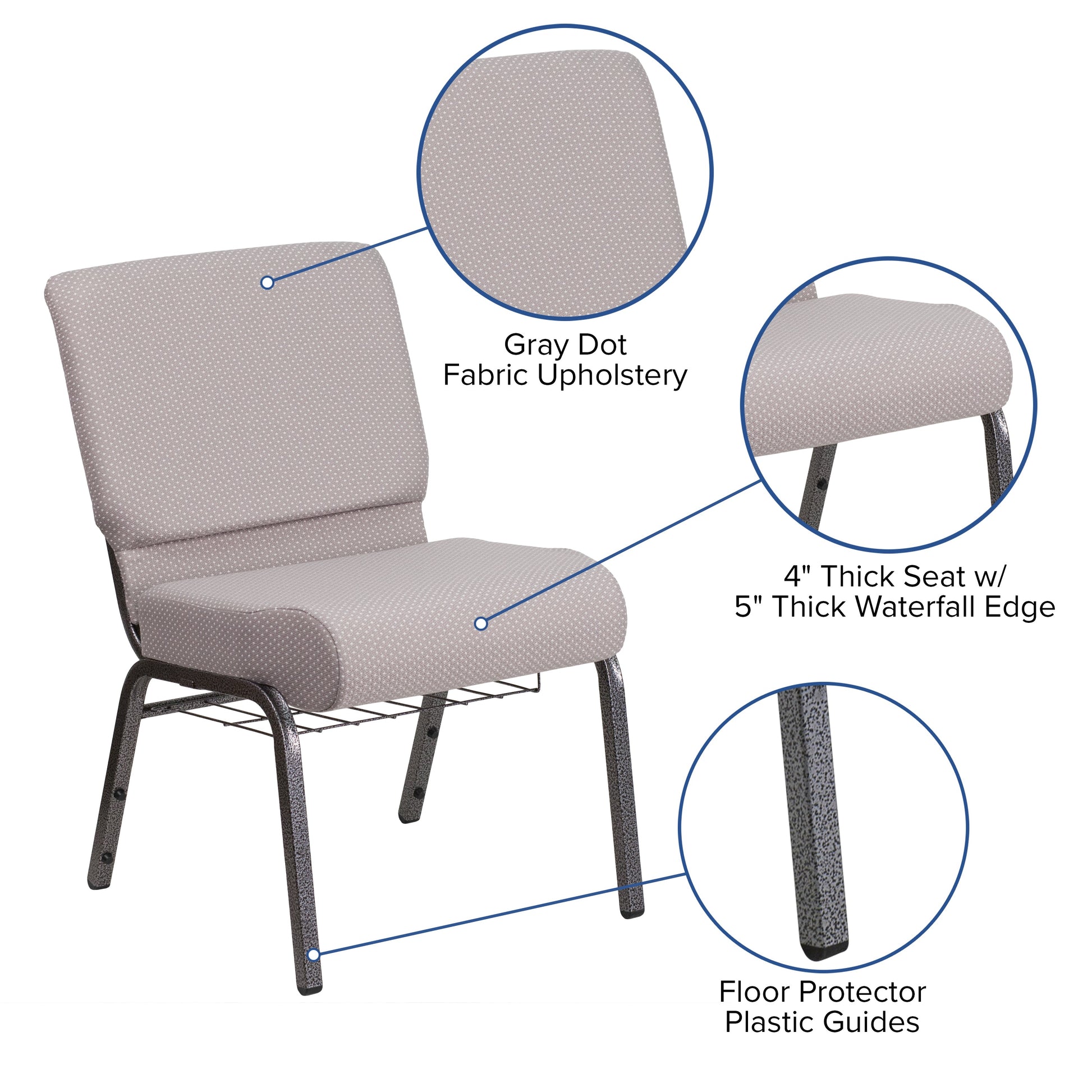 HERCULES Series 21''W Church Chair in Gray Dot Fabric with Book Rack - Silver Vein Frame Dimensions: 21.25"W x 25"D x 33"H
