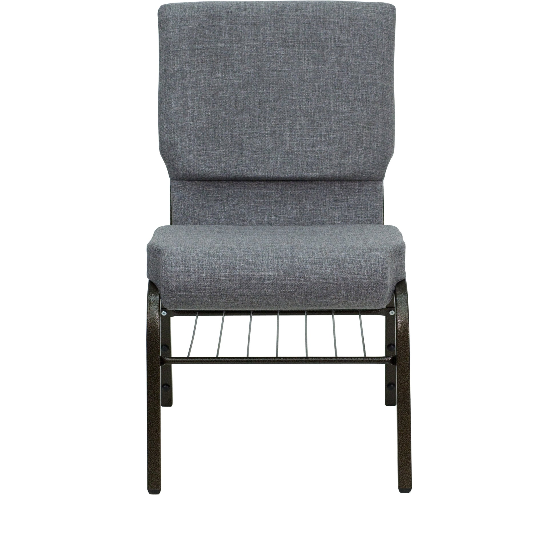 HERCULES Series 18.5''W Church Chair in Gray Fabric with Book Rack - Gold Vein Frame Dimensions: 19"W x 24"D x 33"H