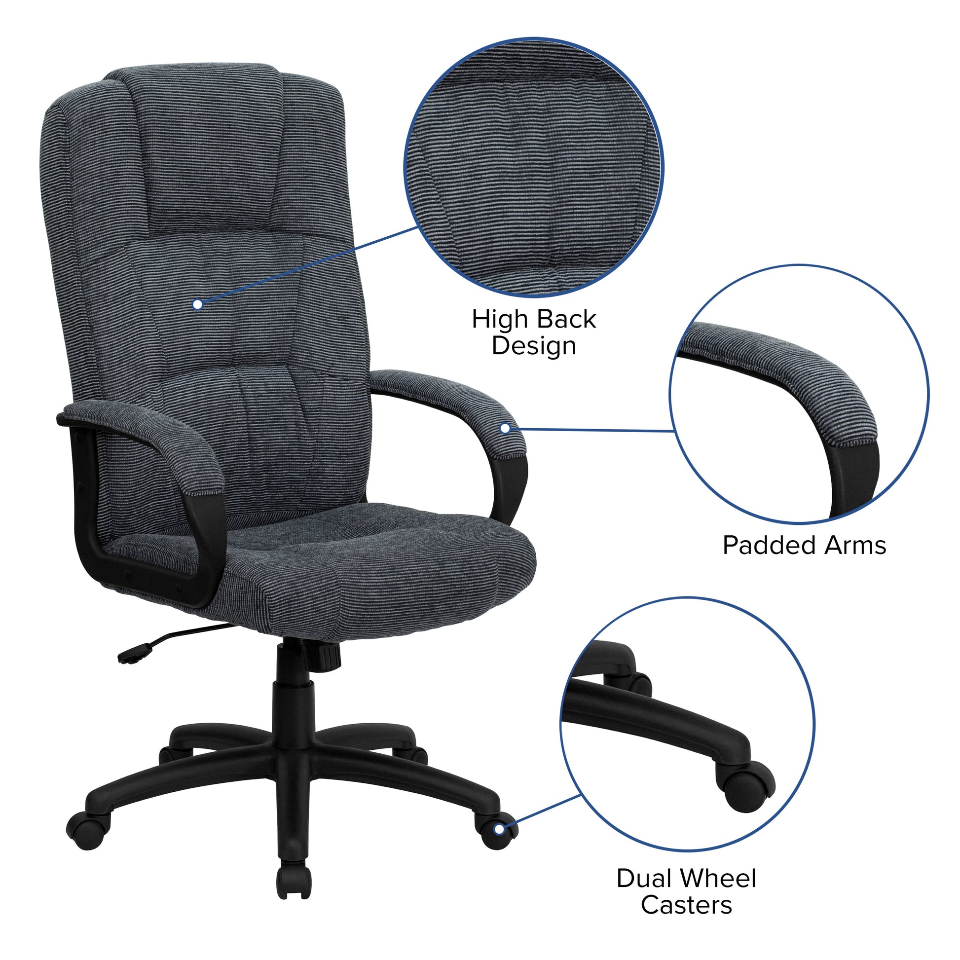 Rochelle High Back Gray Fabric Executive Swivel Office Chair with Arms Dimensions: 25.75"W x 22.75"D x 44" - 47.5"H