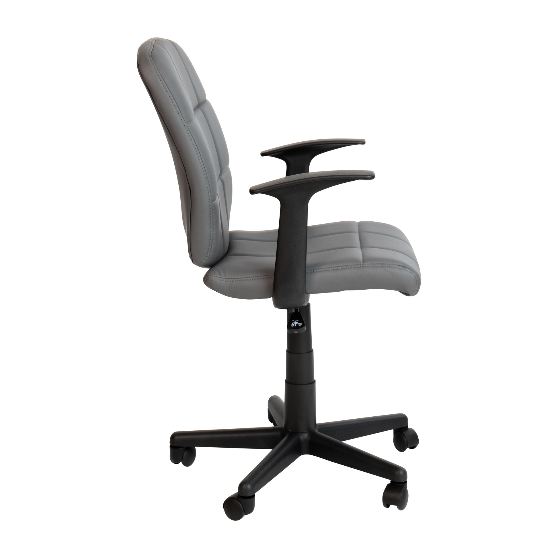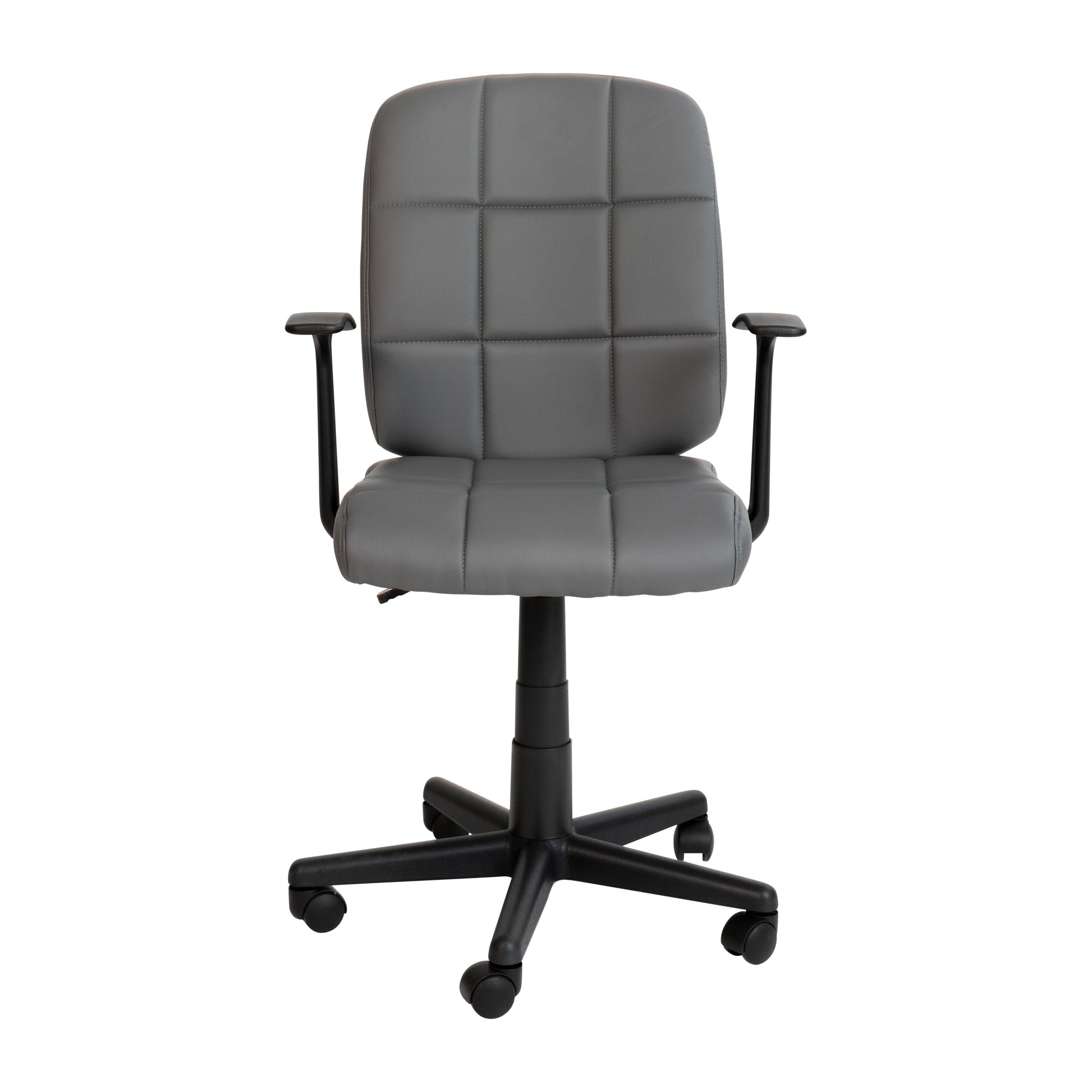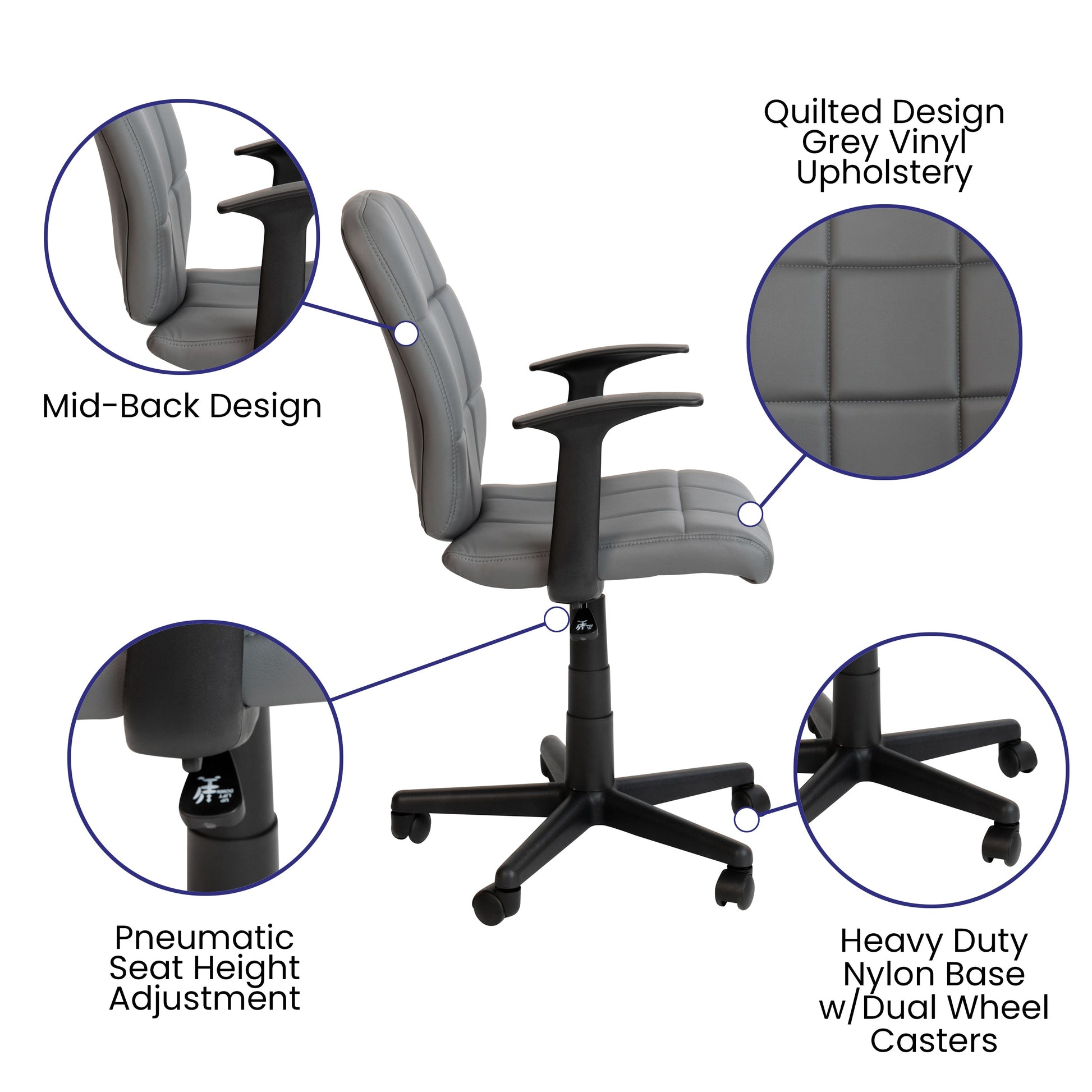 Clayton Mid-Back Gray Quilted Vinyl Swivel Task Office Chair with Arms Dimensions: 23"W x 24"D x 34" - 38.75"H