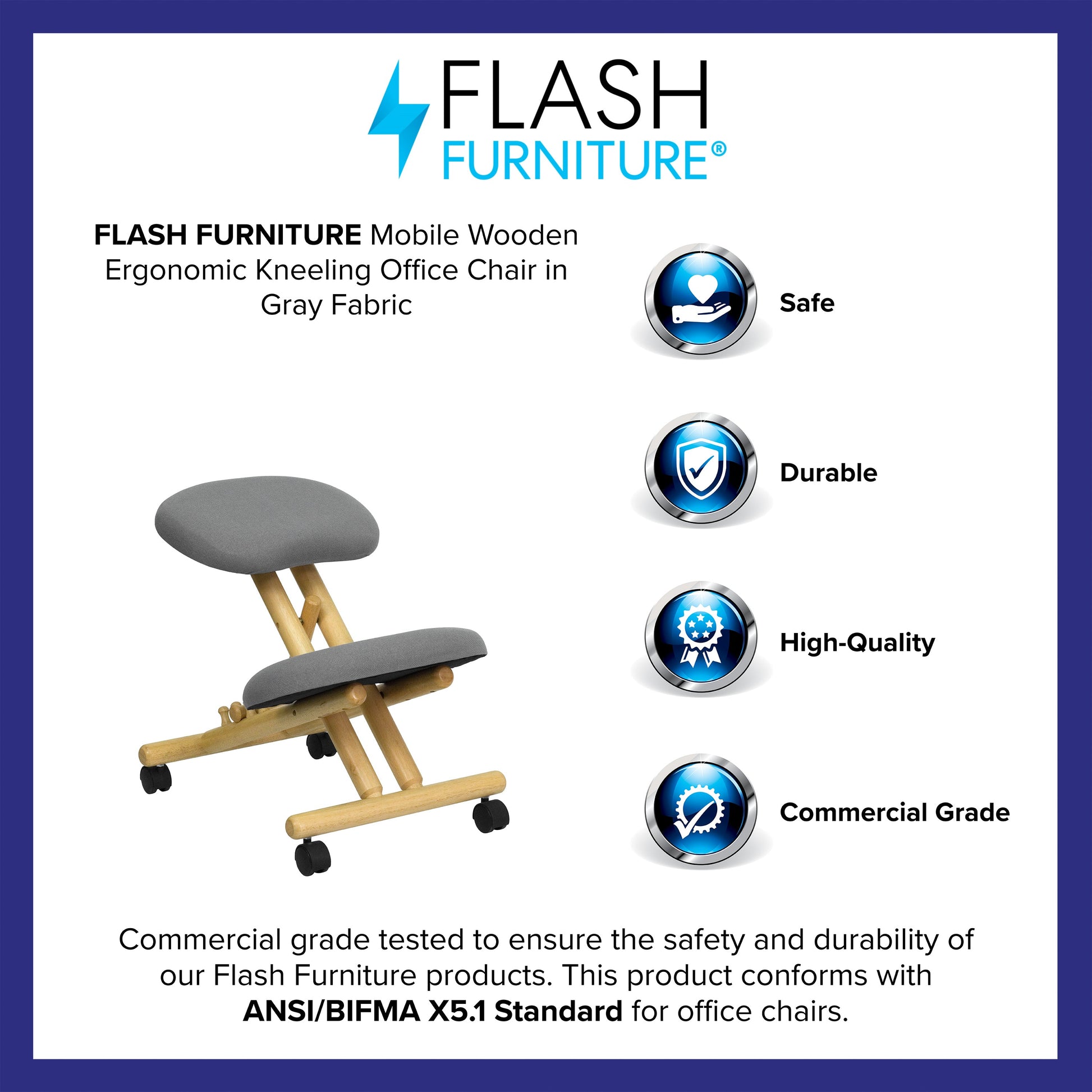 Posey Mobile Wooden Ergonomic Kneeling Office Chair in Gray Fabric Dimensions: 18"W x 24"D x 20" - 26"H