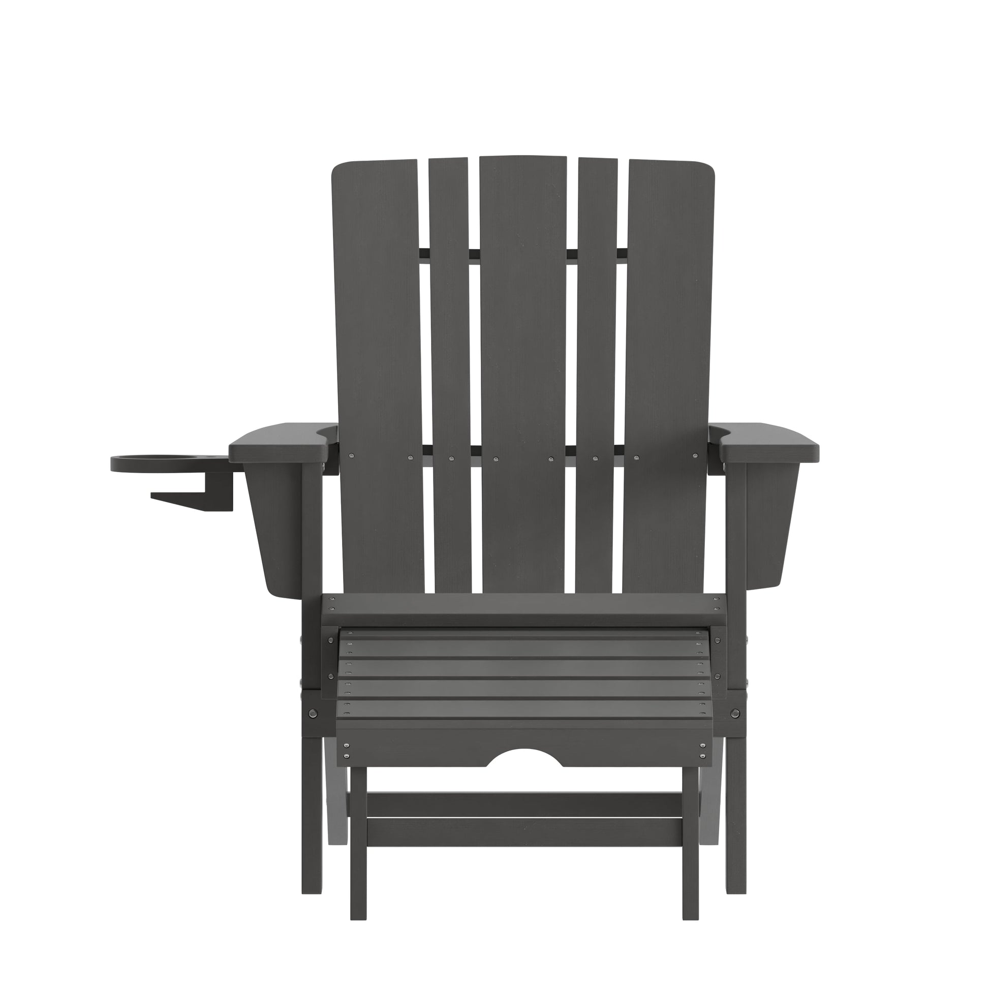 Halifax HDPE Adirondack Chair with Cup Holder and Pull Out Ottoman, All-Weather HDPE Indoor/Outdoor Lounge Chair in Gray Dimensions: 33.75"W x 47.25"D x 35.75"H