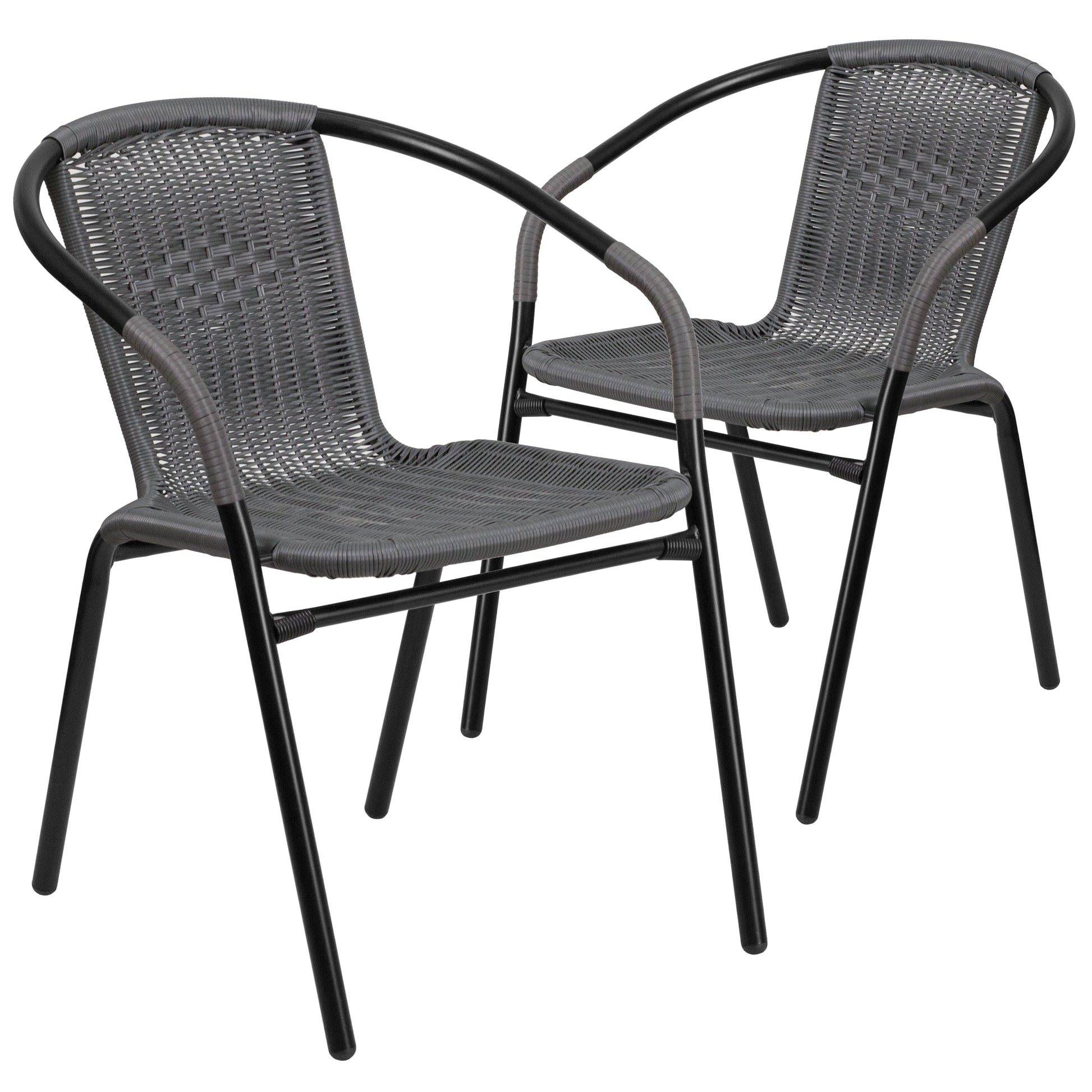 Lila 2 Pack Gray Rattan Indoor-Outdoor Restaurant Stack Chair Dimensions: 21.75"W x 23.5"D x 28.5"H