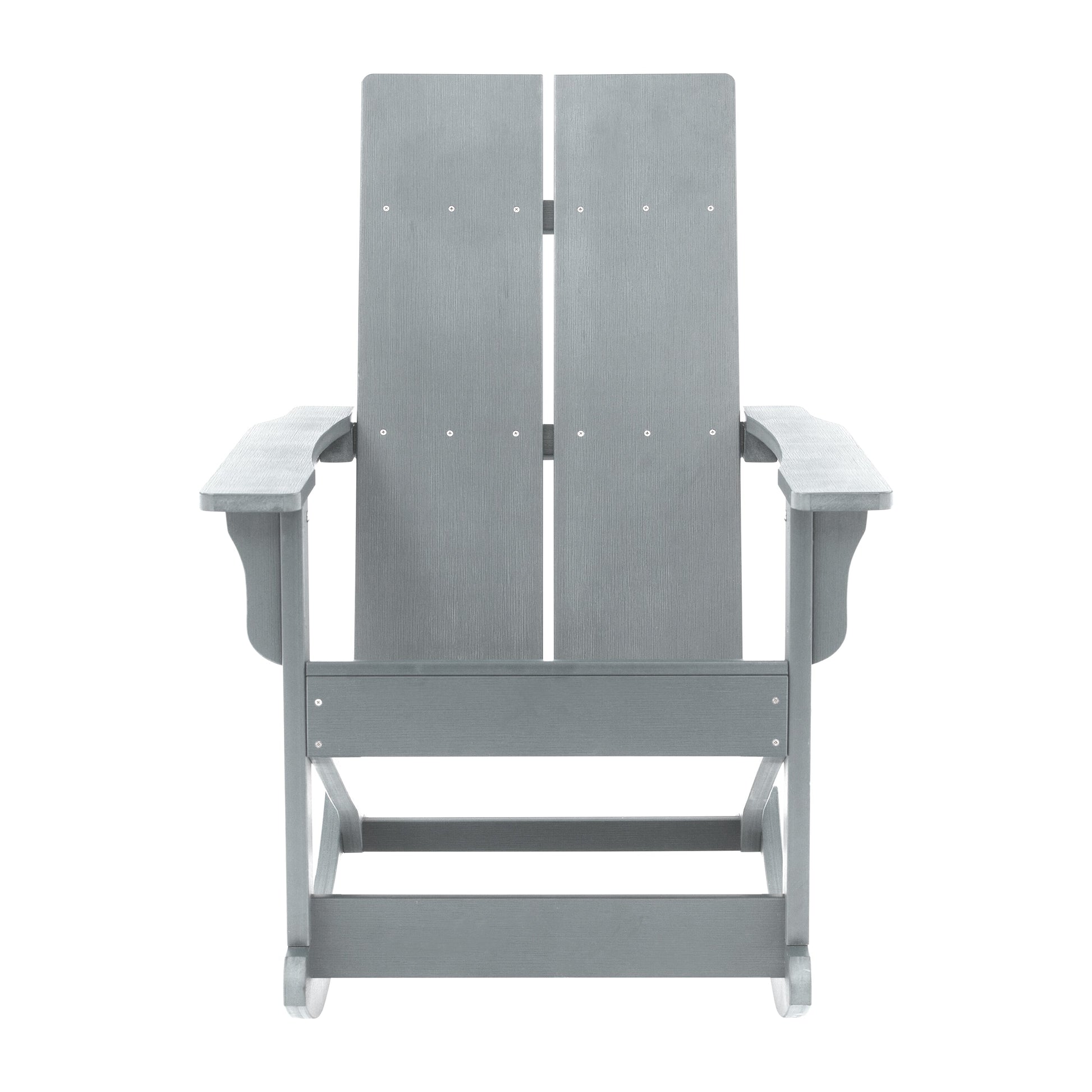 Finn Modern Commercial Grade All-Weather 2-Slat Poly Resin Wood Rocking Adirondack Chair with Rust Resistant Stainless Steel Hardware in Gray Dimensions: 29"W x 38"D x 40.5"H