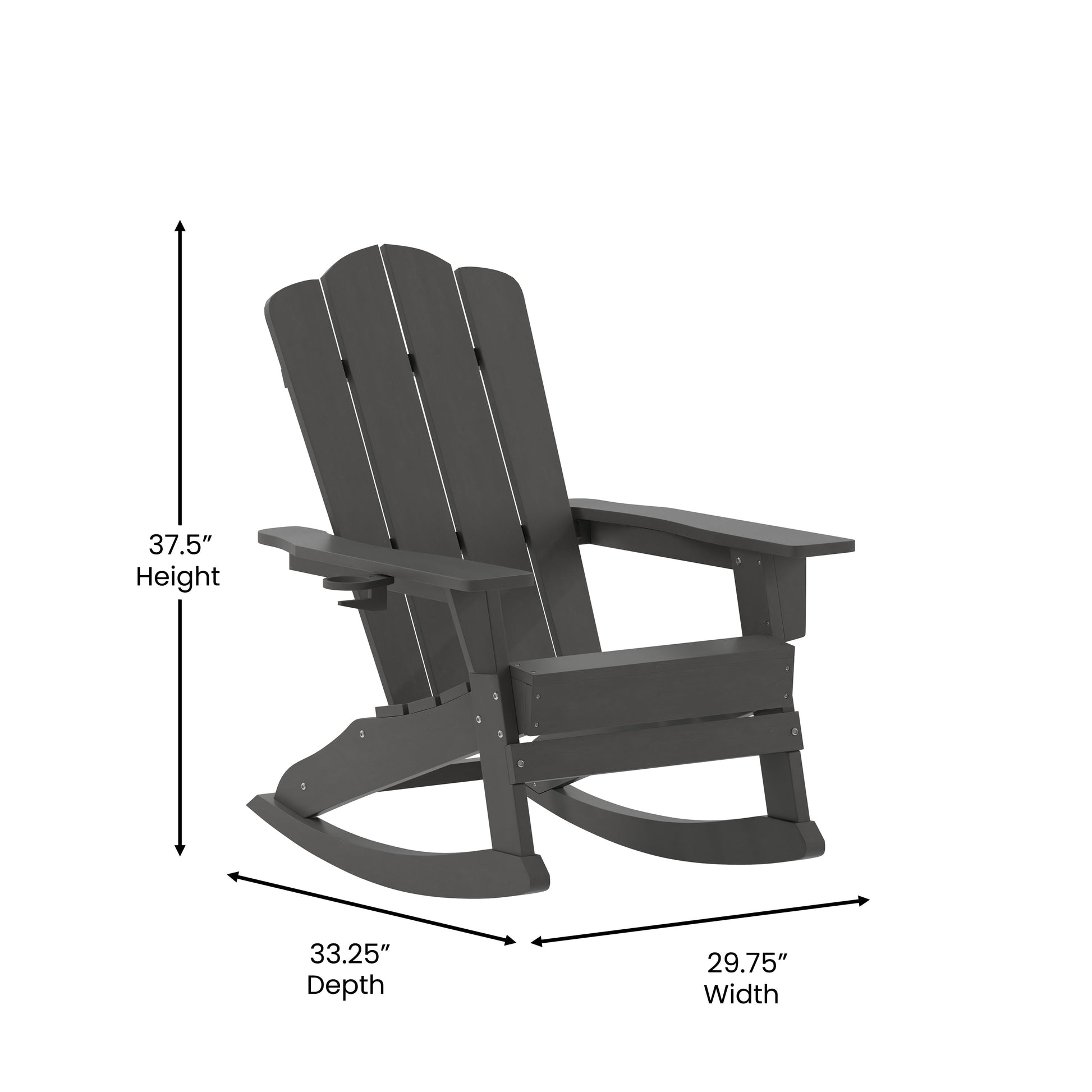 Newport Adirondack Rocking Chair with Cup Holder, Weather Resistant HDPE Adirondack Rocking Chair in Gray Dimensions: 29.75"W x 33.25"D x 37.5"H