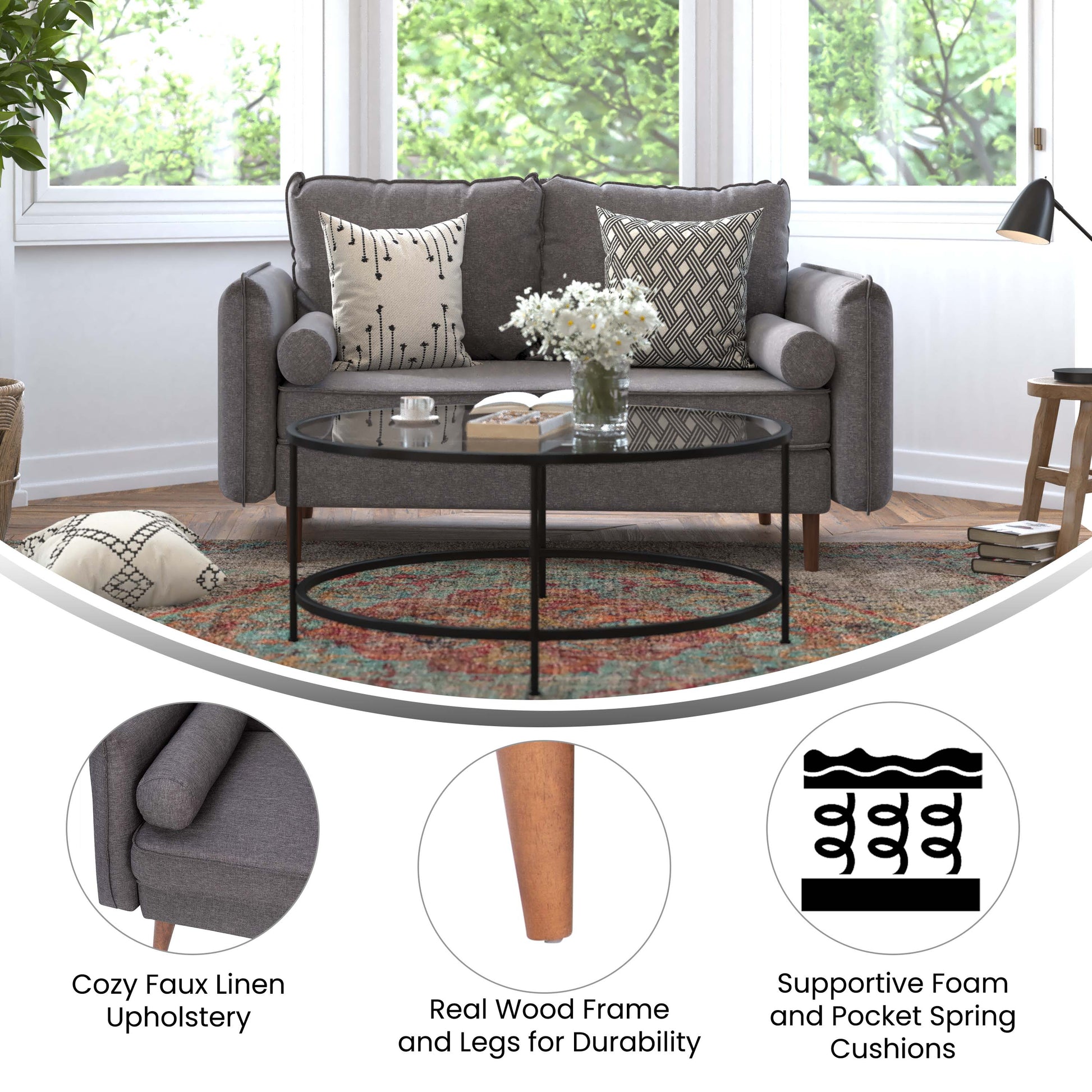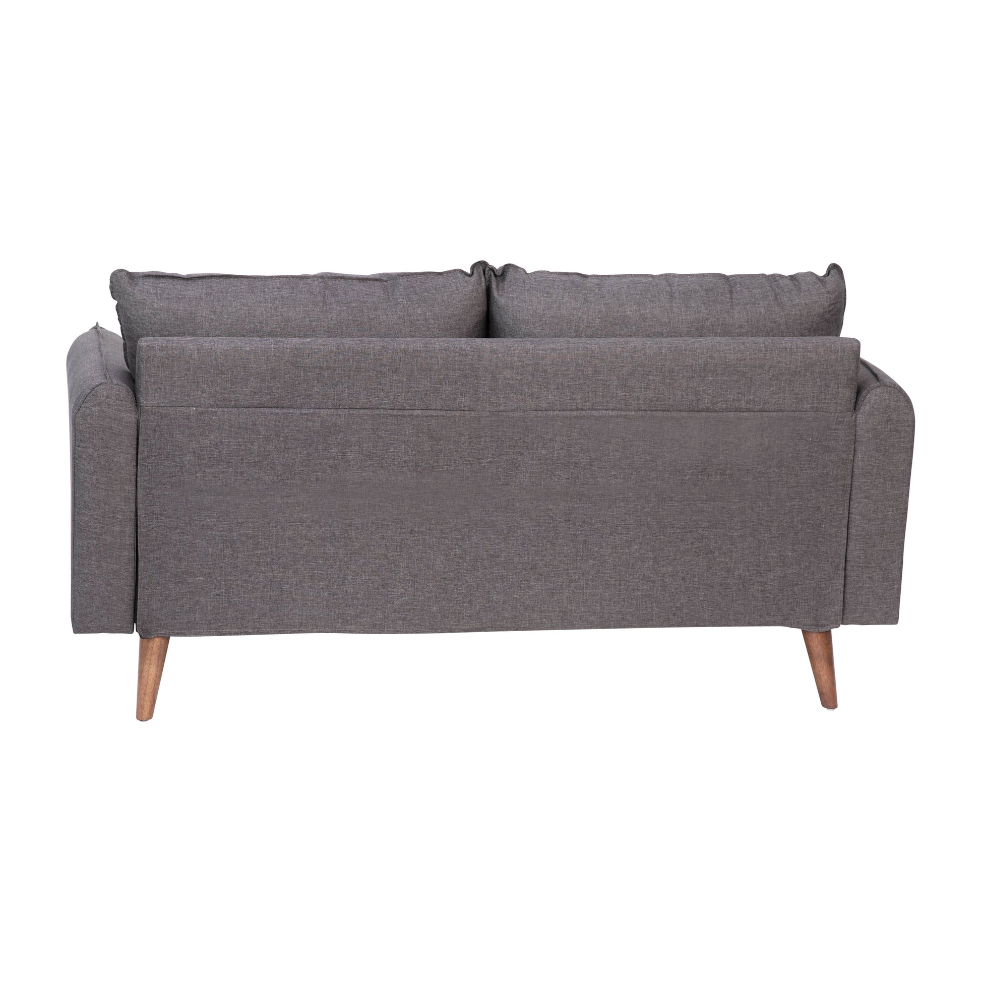 Evie Mid-Century Modern Loveseat Sofa with Faux Linen Fabric Upholstery & Solid Wood Legs in Stone Gray Dimensions: 60"W x 32.5"D x 27.25" - 31"H