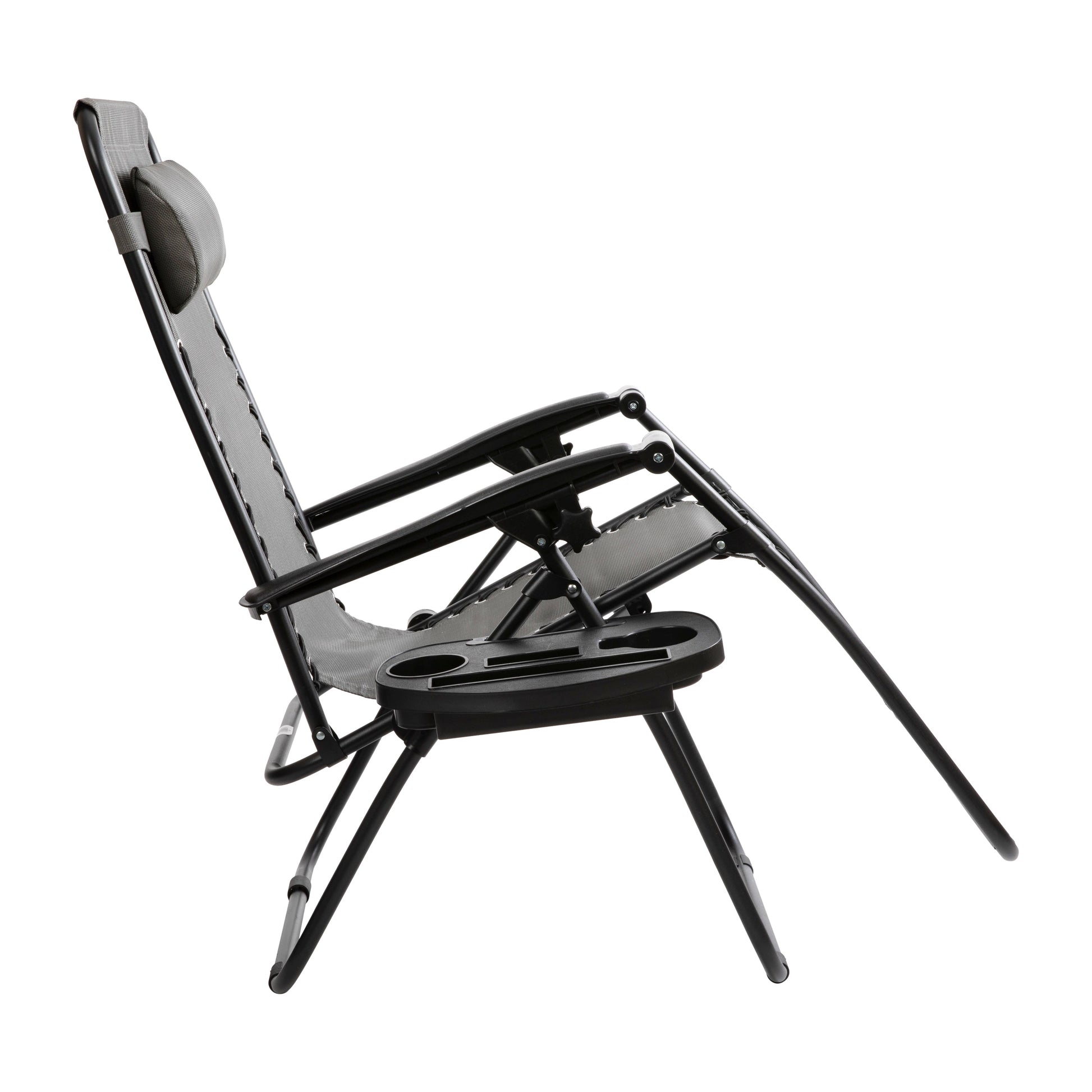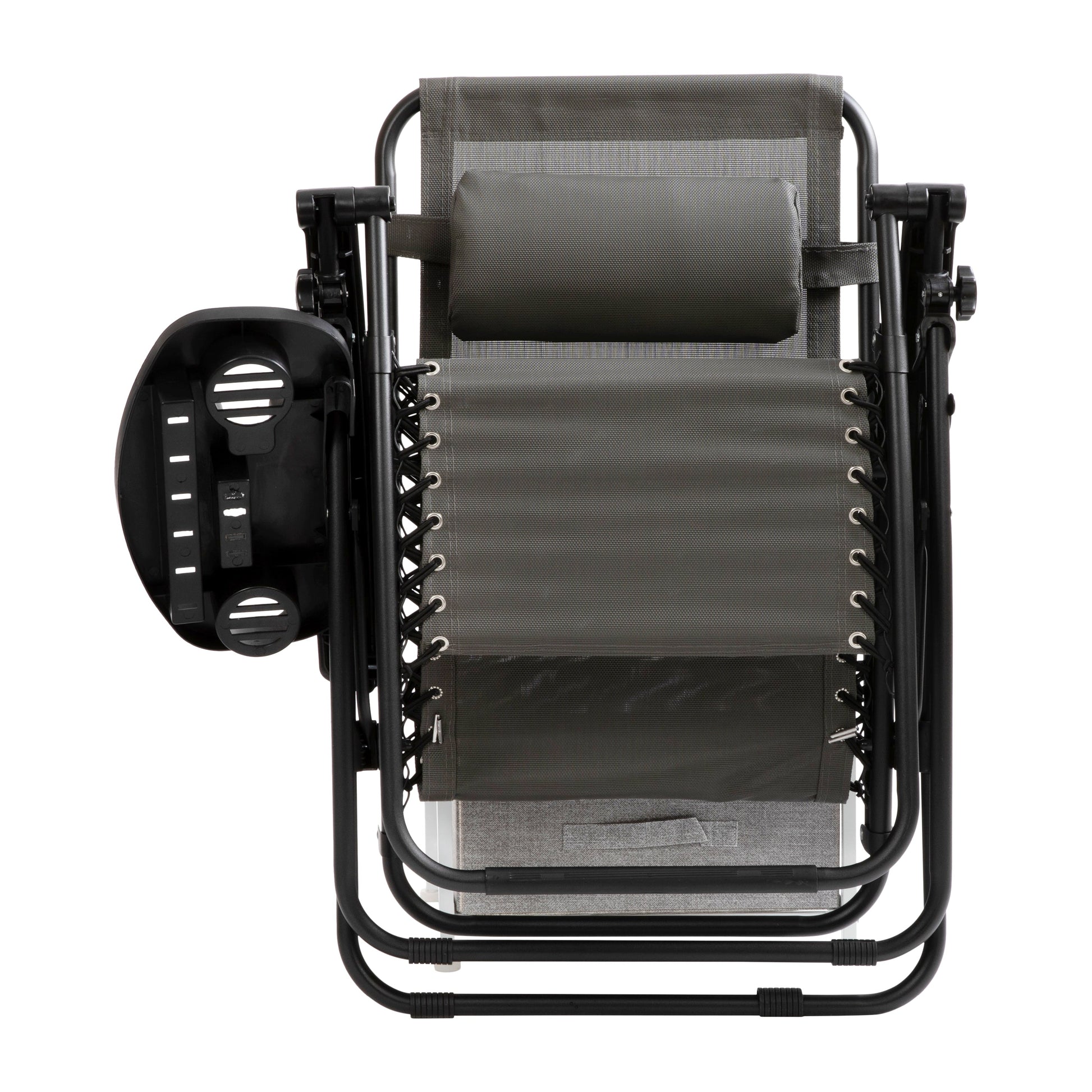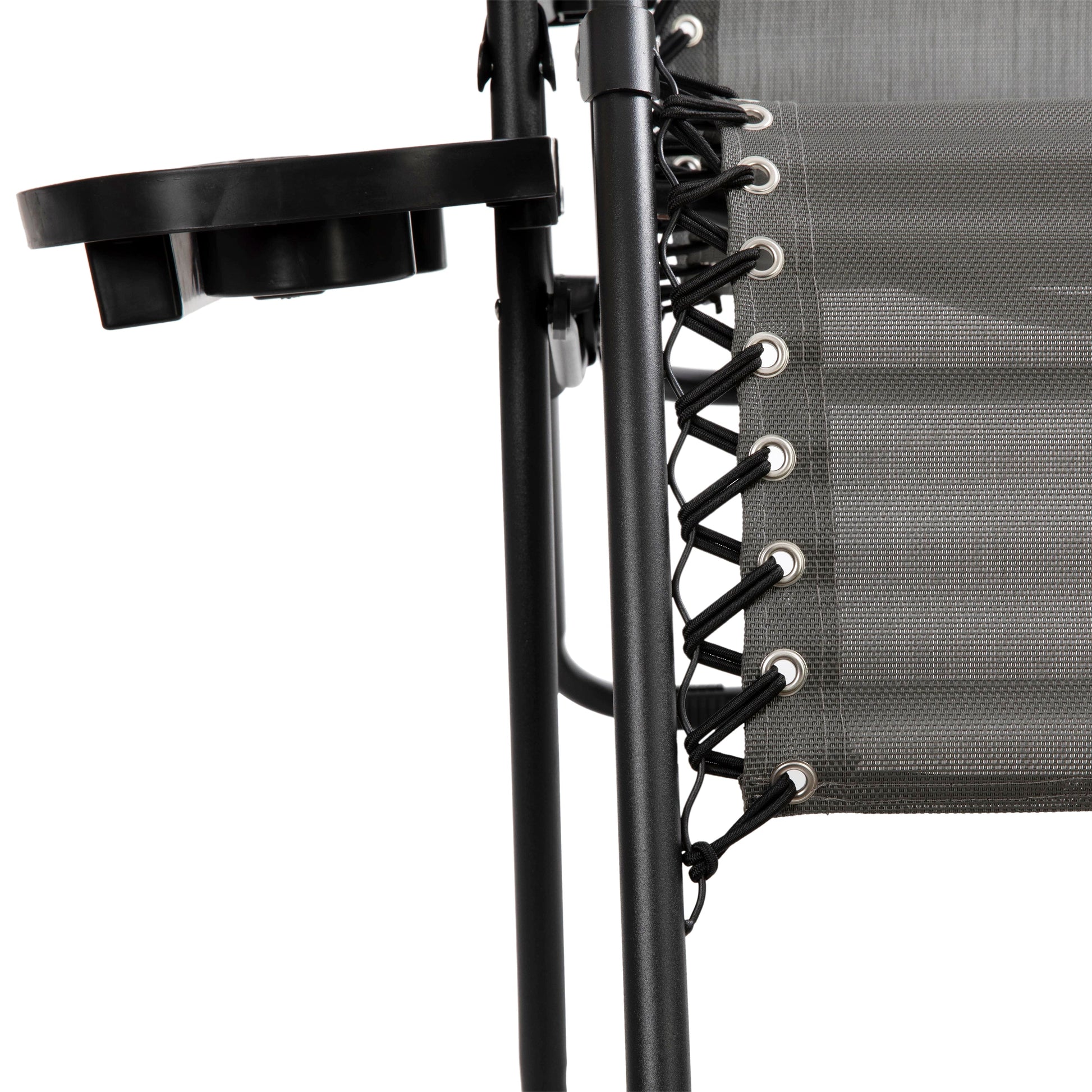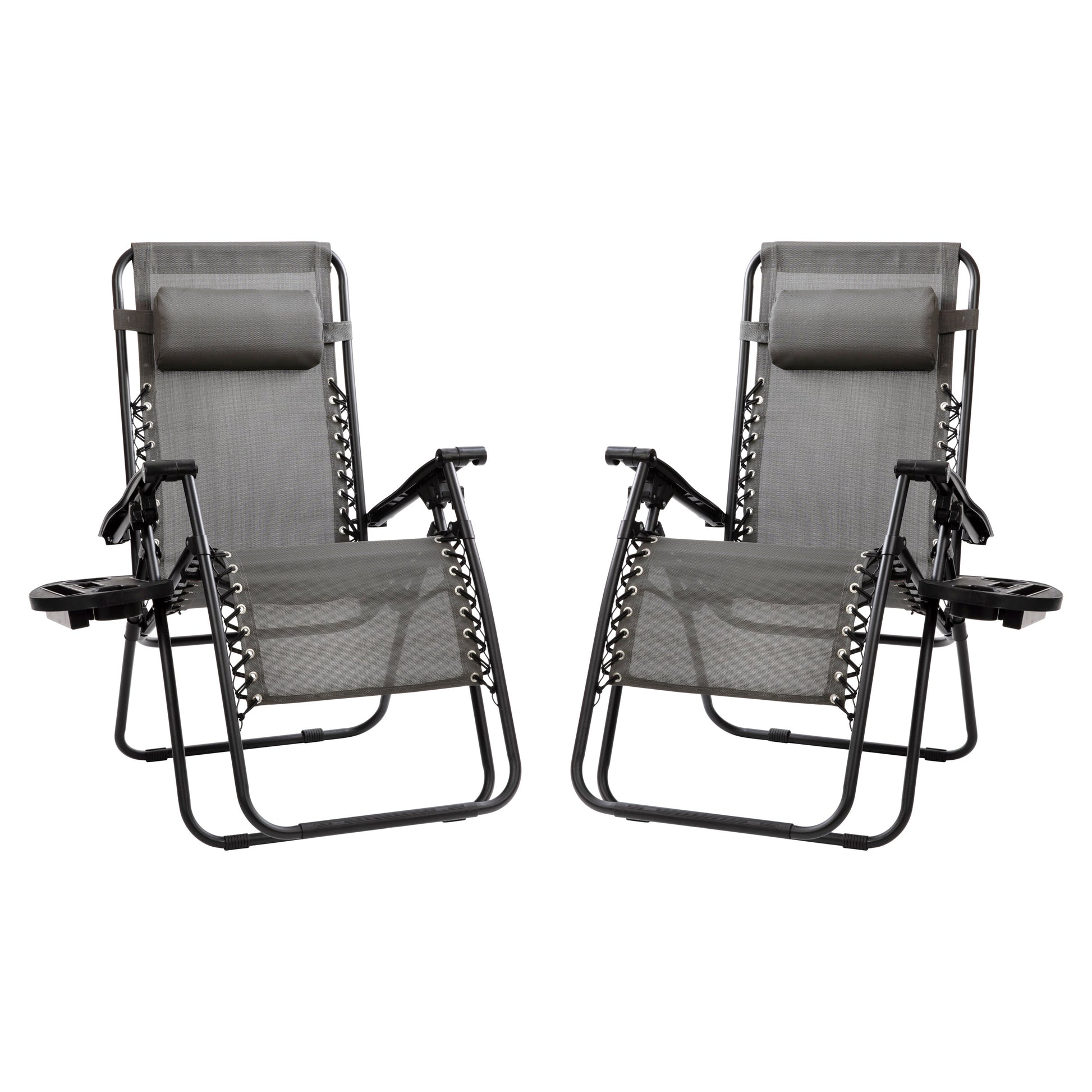 Celestial Adjustable Folding Mesh Zero Gravity Reclining Lounge Chair with Pillow and Cup Holder Tray in Gray, Set of 2 Dimensions: 25.5"W x 27.5" - 60.5"D x 35" - 43"H