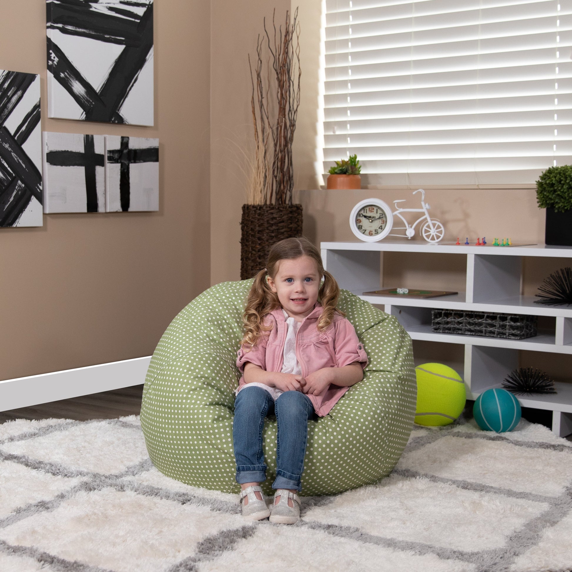 Dillon Small Green Dot Refillable Bean Bag Chair for Kids and Teens Dimensions: 30"W x 30"D x 18"H