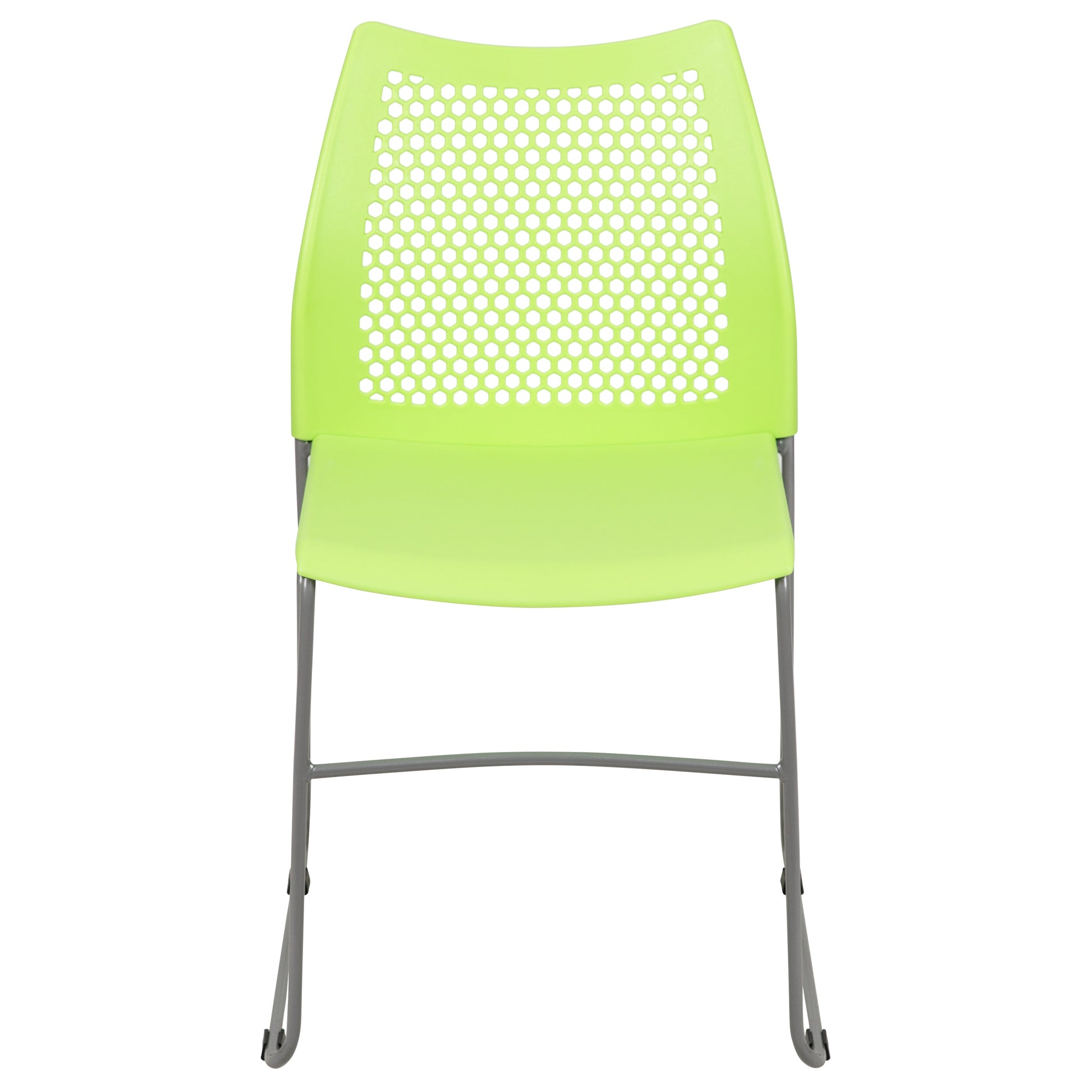 HERCULES Series 661 lb. Capacity Green Stack Chair with Air-Vent Back and Gray Powder Coated Sled Base Dimensions: 18.25"W x 21"D x 32"H