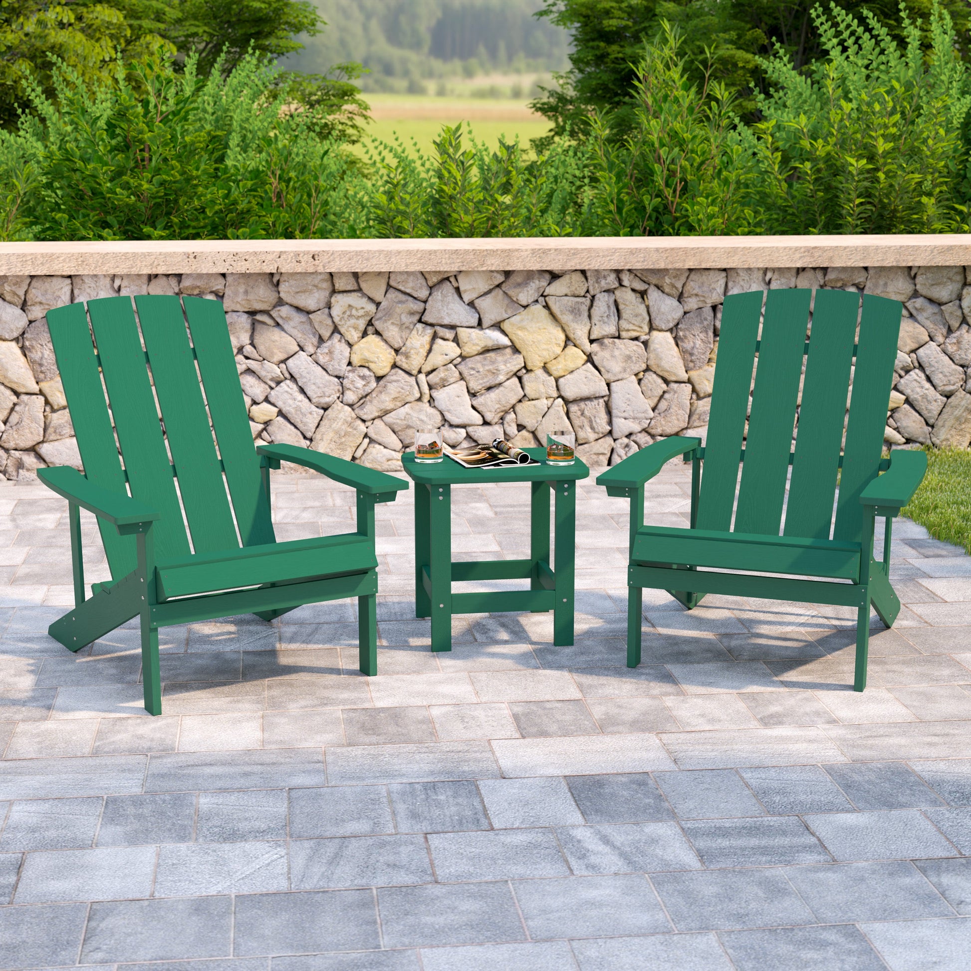 2 Pack Charlestown Commercial All-Weather Poly Resin Wood Adirondack Chairs with Side Table in Green Dimensions: 29.5"W x 33.5"D x 35"H