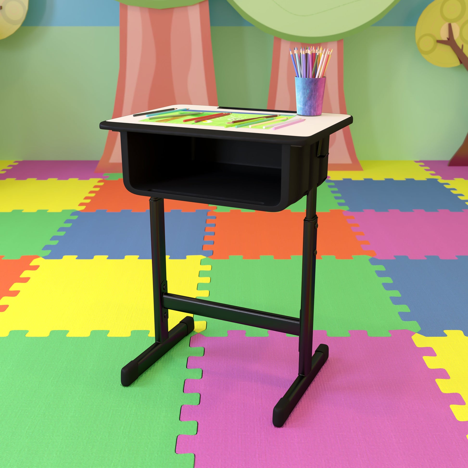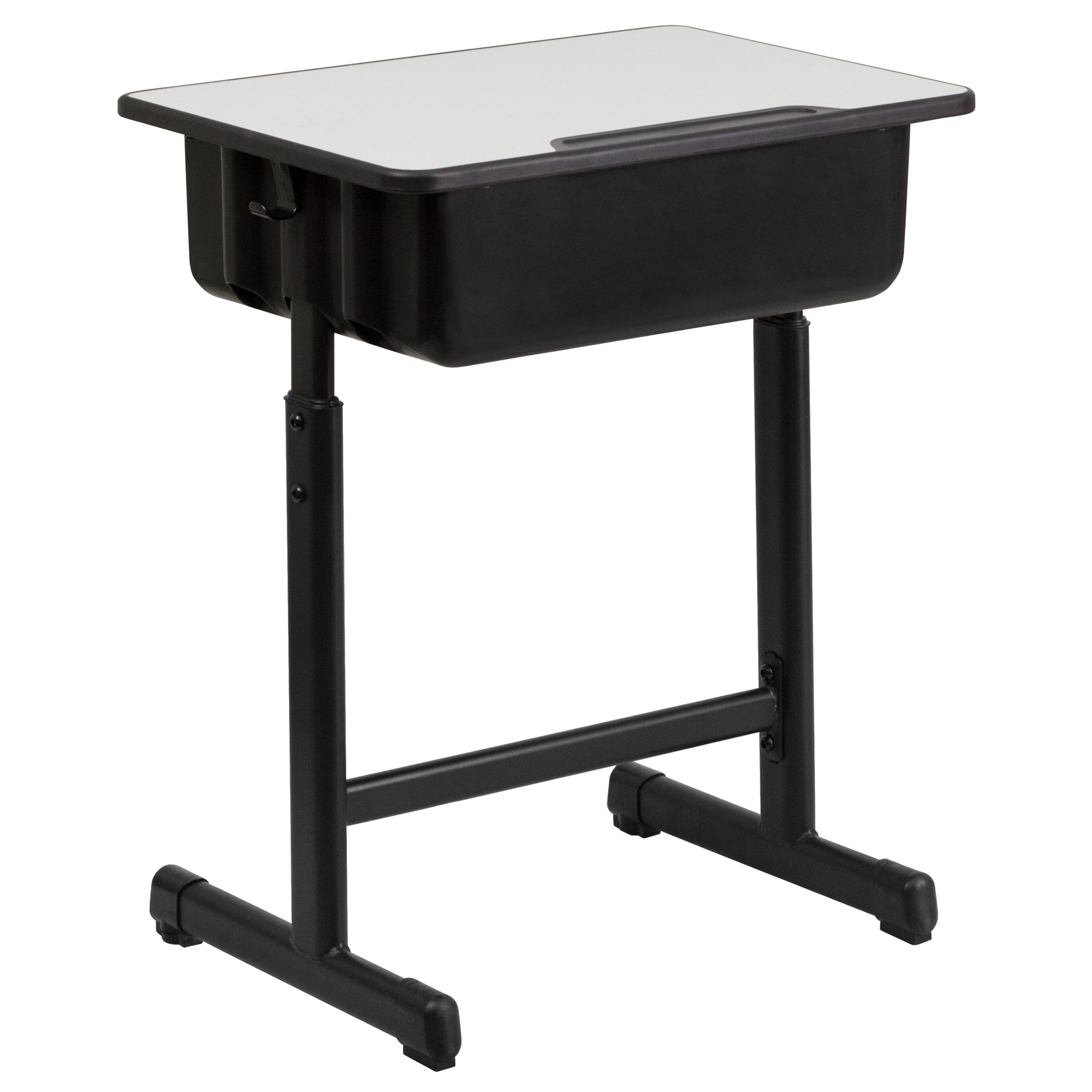 Billie Student Desk with Grey Top and Adjustable Height Black Pedestal Frame Dimensions: 23.625"W x 17.75"D x 28.25" - 31.5"H
