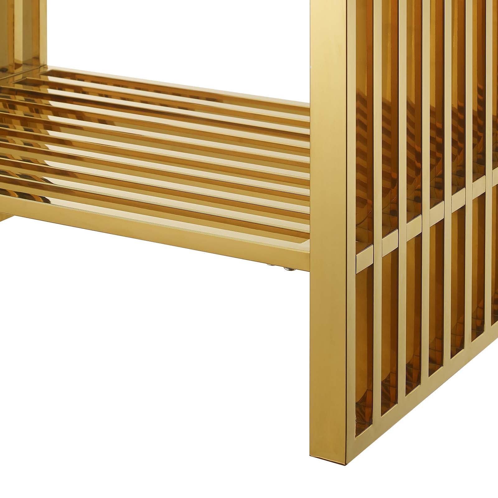 Introduce stark modernity to your bathroom space with the straight lines, polished detail, and angular profile of the Gridiron 30" Bathroom Vanity. Crafted with durable stainless steel, this open-concept vanity offers ample storage space underneath for towels, bathroom essentials, and more. This bathroom vanity features an artificial marble sink with an integrated countertop and 8" centerset faucet holes. A striking addition to the bathroom, this sink vanity rests on adjustable non-marking foot pads to protect flooring. Assembly required. Sink fixtures not included.