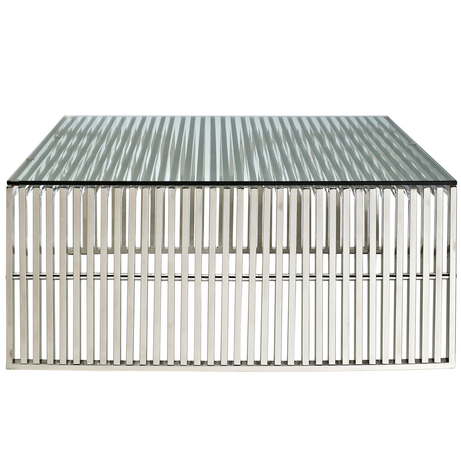 One - Gridiron Stainless Steel Coffee Table with Tempered Glass Top Overall Product Dimensions: 39.5"L x 39.5"W x 17"H
