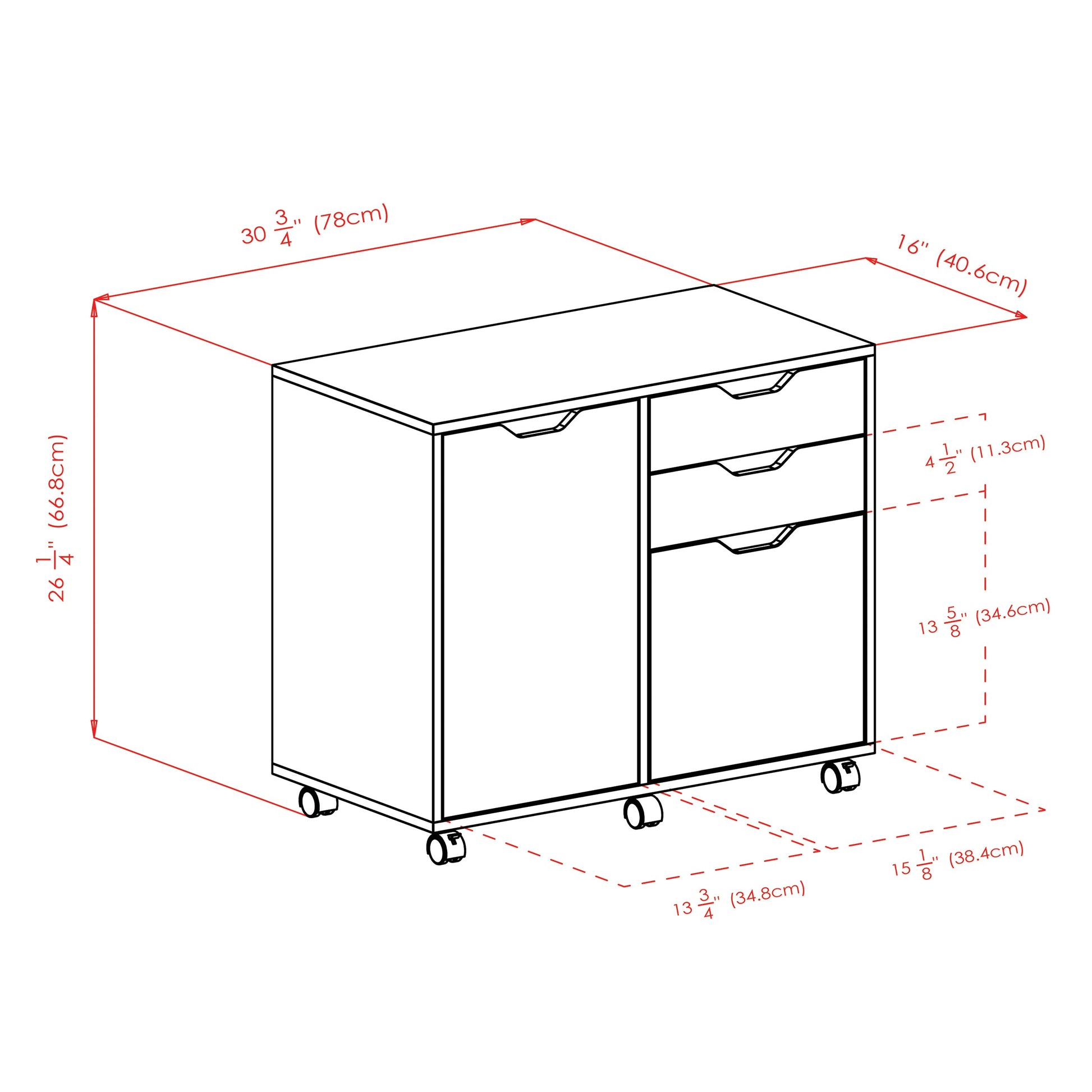 The Winsome Wood Halifax 2-Section Mobile Filing Cabinet can transform a home office or any room where you need easy-access storage. Use the lower of its three gliding drawers as a filing cabinet with removable metal rods to hang letter-sized files, or remove the rods and have an extra-deep drawer for bulky storage. The cabinet has an adjustable (or removable) shelf that adjusts to 3 different height positions, ideal for keeping your home office files, printer paper, charging cables, and office accessories neat and organized. And with its clean, simple design, and easy-to-use cut-out handles, the Halifax will work just as well in a walk-in closet to expand space for clothing, shoes, handbags and accessories. Or use it in a child's bedroom to reduce the clutter of toys and sports gear. The flexibility of the filing drawer configuration and adjustable/removable shelf make it adaptable to a variety of storage needs. The unit has five wheels, two of which lock, for easy mobility as well as a way to keep it securely in place. The cabinet is made of sturdy composite wood in a contemporary black finish that will blend with any decor. For additional storage, combine the 2-Section Filing Cabinet with other organizers from the Winsome Halifax collection. This item conveniently ships in 1 box and is ready for assembly. Replacement part request can be submitted directly to the manufacturer within 60 days from date of purchase.